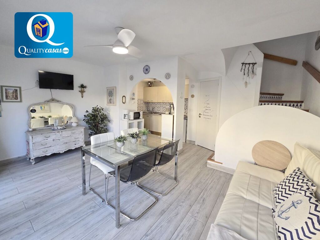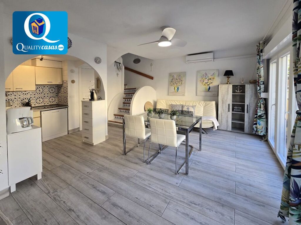Con una construcción sólida y de calidad, la vivienda se ofrece semiamueblada, se encuentra en perfecto estado, como nueva, y dispone de primeras calidades, contando con AA.CC con 3 splits y bomba de calor, toldos, carpintería lacada en blanco, suelos en gres porcelánico efecto madera y ventanas aluminio climalit, entre otras mejoras.