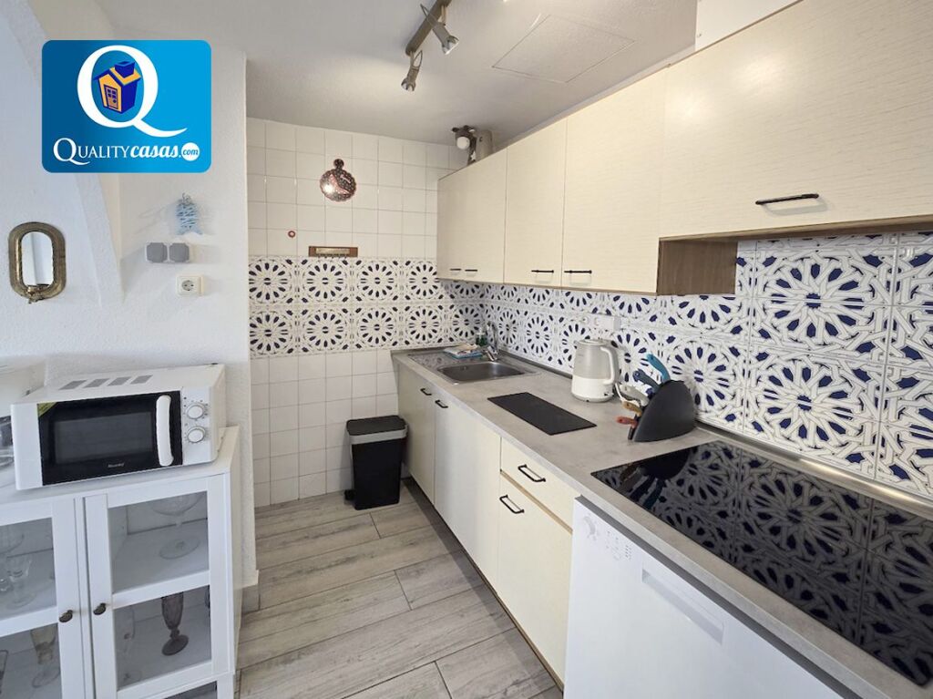 El porche terraza de entrada a la vivienda da paso al luminoso salón con dos ambientes, que cuenta con cocina integrada, totalmente equipada y con todos los electrodomésticos. La vivienda dispone de 3 habitaciones con armarios empotrados y 2 baños completos, disfrutando el dormitorio principal de baño en suite. Cuenta además con trastero en planta superior y plaza de parking en la urbanización.