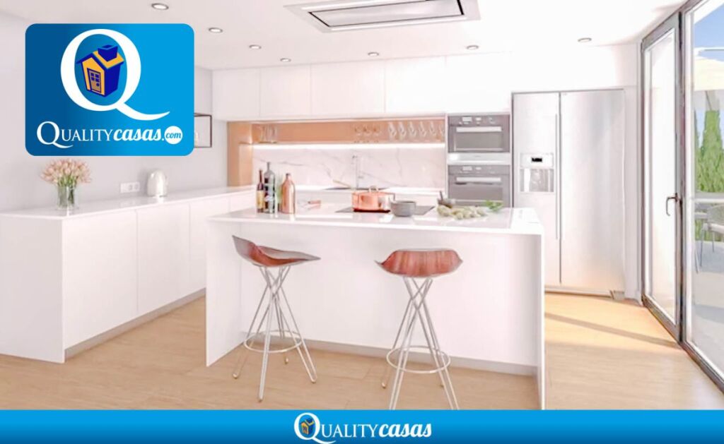 Cocina equipada con electrodomésticos consistente en placa vitrocerámica y cocción especial según últimos modelos de mercado, horno y microondas empotrados, extractor especial y semioculto en techo.