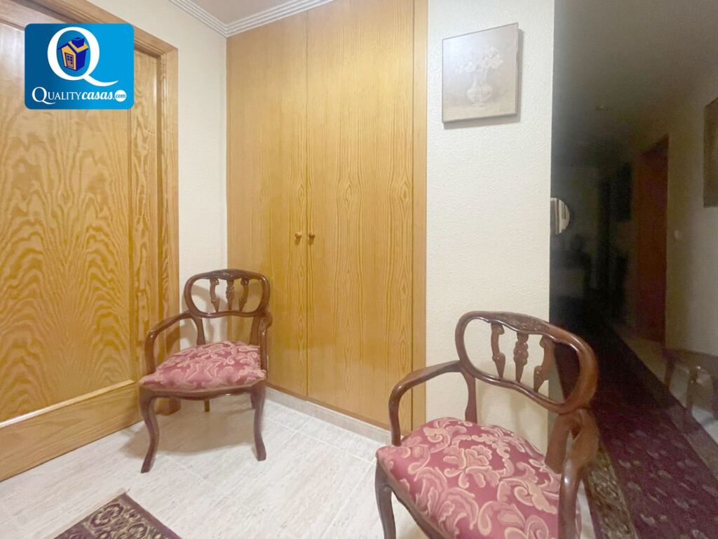 El amplio y luminoso salón, muy bien comunicado, cuenta con dos ambientes y acceso a la terraza. La cocina independiente, con zona de office, se encuentra totalmente equipada, cuenta con todos los electrodomésticos y dispone también de galería y magnífico patio de 42 m2. La vivienda cuenta con 4 habitaciones (3 de ellas con armarios empotrados y una de ellas acondicionada como segundo salón) y 2 baños completos, disfrutando el dormitorio principal de baño en suite.