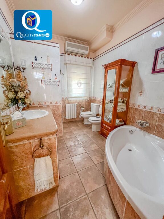 ----------- La exclusiva vivienda se encuentra en excelente estado, cuenta con altas calidades de construcción y dispone de muchas mejoras: AA.CC centralizado y por Split (7 en toda la vivienda) con bomba de calor, calefacción por calentadores de gas, techos de escayola, techos con vigas de madera en varias estancias, mosquiteras, rejas, toldos, carpintería de cerezo macizo, ventanas pvc climalit y suelos en cerámica natural, gres porcelánico y tarima flotante --------