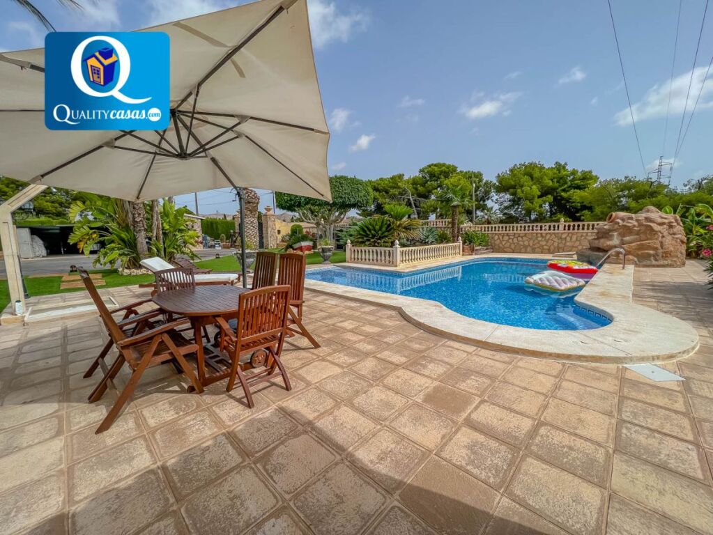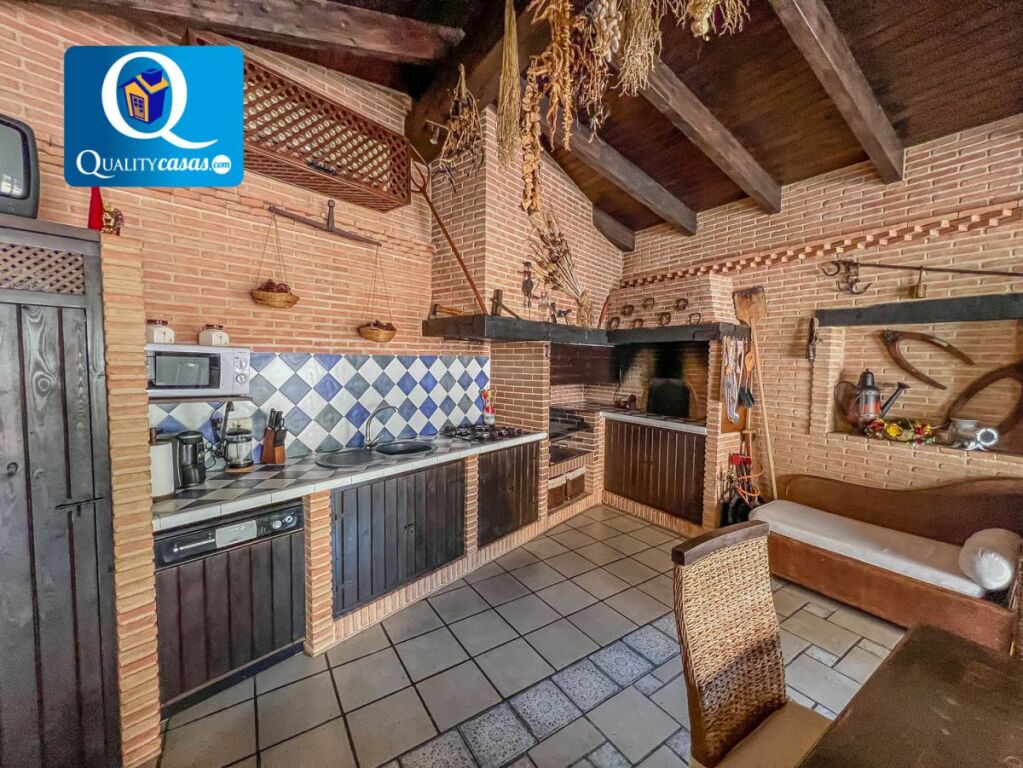 ------- La parcela ajardinada, perfectamente perimetrada y con riego automático, se encuentra totalmente acondicionada y dispone de PISCINA PRIVADA, zonas de arbolado y césped natural, así como de zona de aparcamiento cubierto para vehículos -------- Cuenta además con MAGNÍFICO COMEDOR BARBACOA EN CONSTRUCCIÓN INDEPENDIENTE, con cocina y aseo ---------