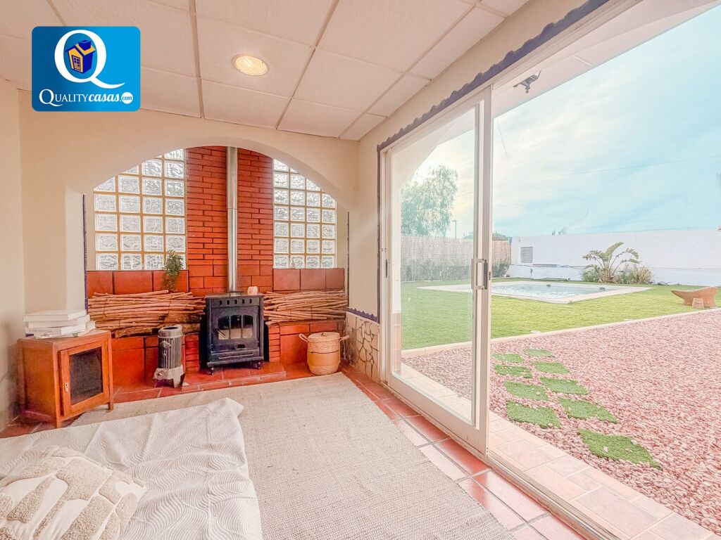 El porche terraza da paso al luminoso y espacioso salón principal con dos orientaciones y tres ambientes, desde donde podemos contemplar el jardín o reunirnos junto a la chimenea. La espaciosa cocina independiente, con vistas exteriores y zona de office, se encuentra amueblada y dispone de cuarto de lavado y plancha. La vivienda dispone de 5 habitaciones con armarios empotrados y 2 baños completos, disponiendo además de un segundo y acogedor salón, así como de cuarto trastero.
