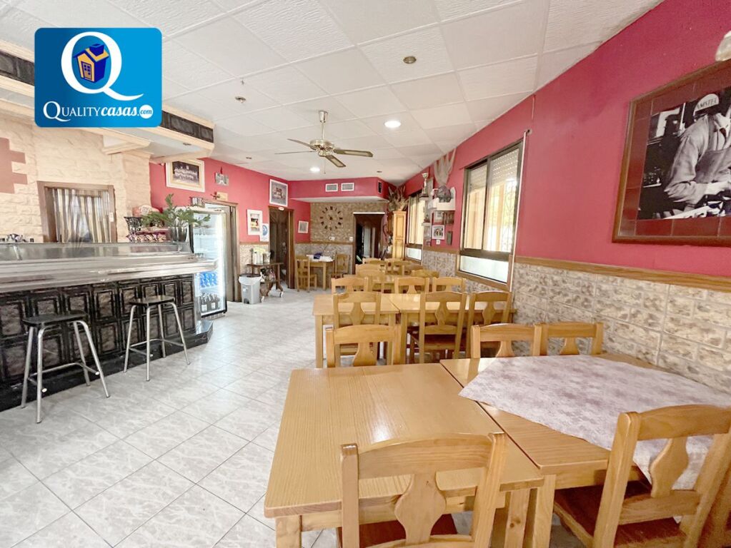 La planta baja es actualmente un restaurante totalmente amueblado y equipado, en pleno funcionamiento y con permiso de ocupación pública para terraza con veladores de 150 m2. Cuenta con amplio salón con dos zonas de comedor, cocina completa totalmente equipada y con salida de humos, electricidad por placas solares con conexión trifásica, 2 aseos y zona de almacén. Dispone de AA.CC centralizado y techos en placa de escayola en estructura de aluminio con iluminación integrada, suelos de gres y ventanas de aluminio. La planta baja cuenta además con zona para posible construcción de garajes.