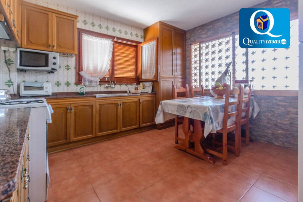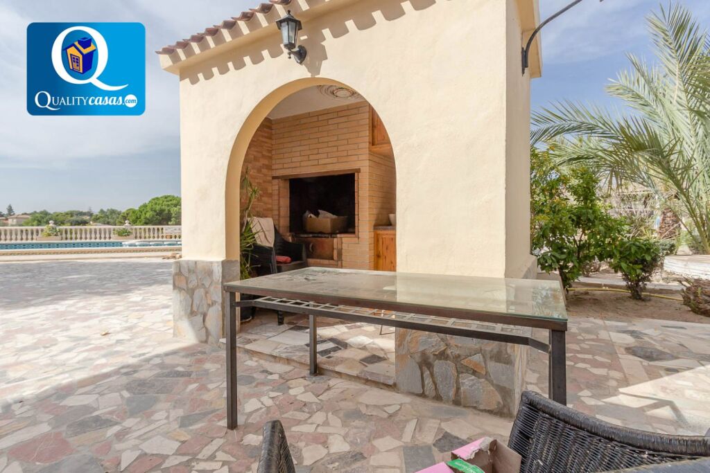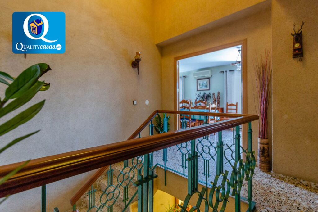 Dispone de 2 completas cocinas independiente con office, luminosas, con gran amplitud y perfectamente comunicadas. Consta de 6 dormitorios amplios (3 de ellos con armarios empotrados) y 3 baños completos. Gran salón comedor de 35 m2 con chimenea, muy luminoso, comunicado con la gran terraza de 40 m2 que rodea la vivienda. La amplia zona jardín dispone de piscina privada y zona de barbacoa equipada, y está perfectamente acondicionada. Dispone además de amplio porche terraza en la entrada de la vivienda y cuenta con gran zona de aparcamiento para varios vehículos. La construcción dispone de altas calidades, contando con AA.CC por Split, puerta blindada, rejas mallorquinas, carpintería en roble macizo, suelos en gres y muchas otras mejoras.