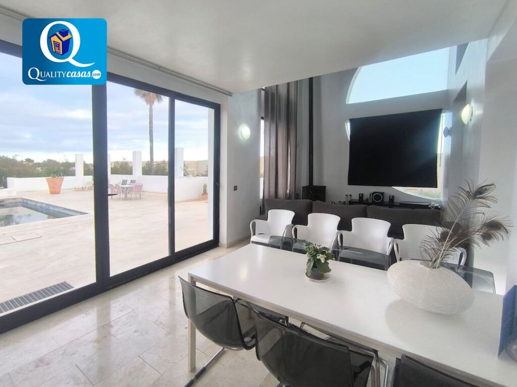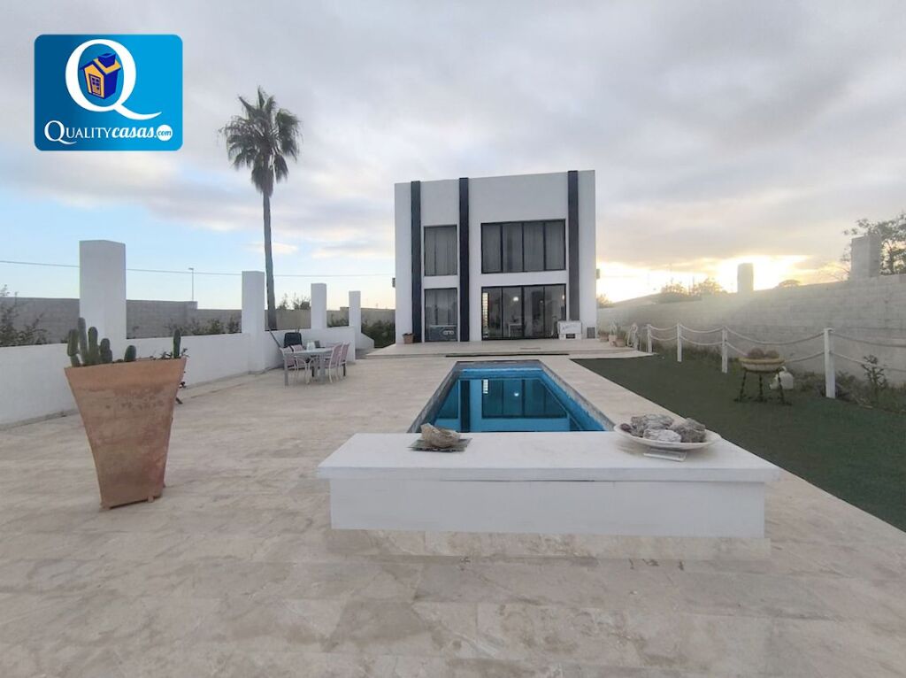 La vivienda es totalmente exterior, absolutamente luminosa y muy amplia. Está concebida con un elegante y moderno diseño. Cuenta con una gran parcela de 3.600 m2. La reciente construcción, sólida y de calidad, así como su ubicación, distribución y perfecto, la convierten en una propiedad acogedora, cómoda y muy exclusiva con enormes posibilidades.