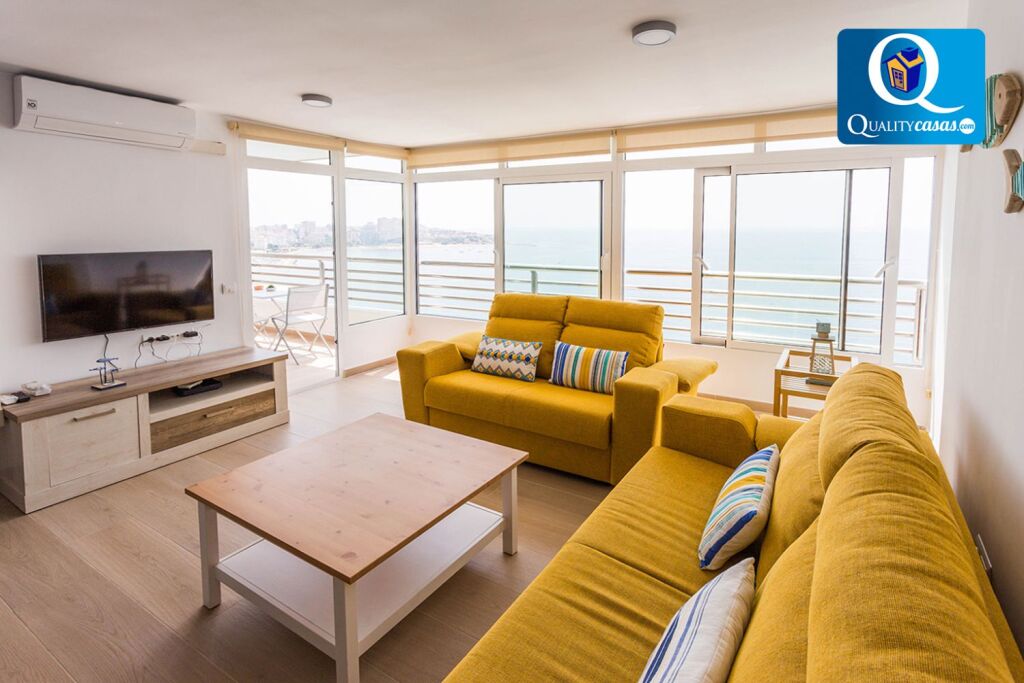 Magnífico piso con inmejorables vistas al mar en primera línea de la Playa de La Albufereta (Alicante), a pocos metros del mar, en avenida principal y rodeado de todos los servicios y zonas comerciales.
