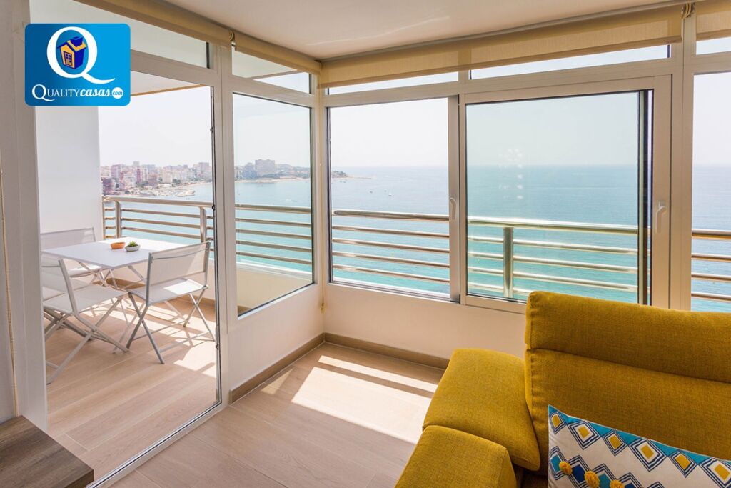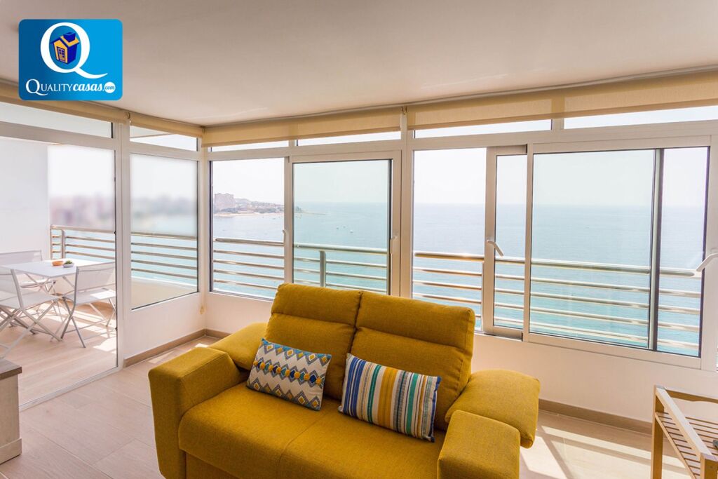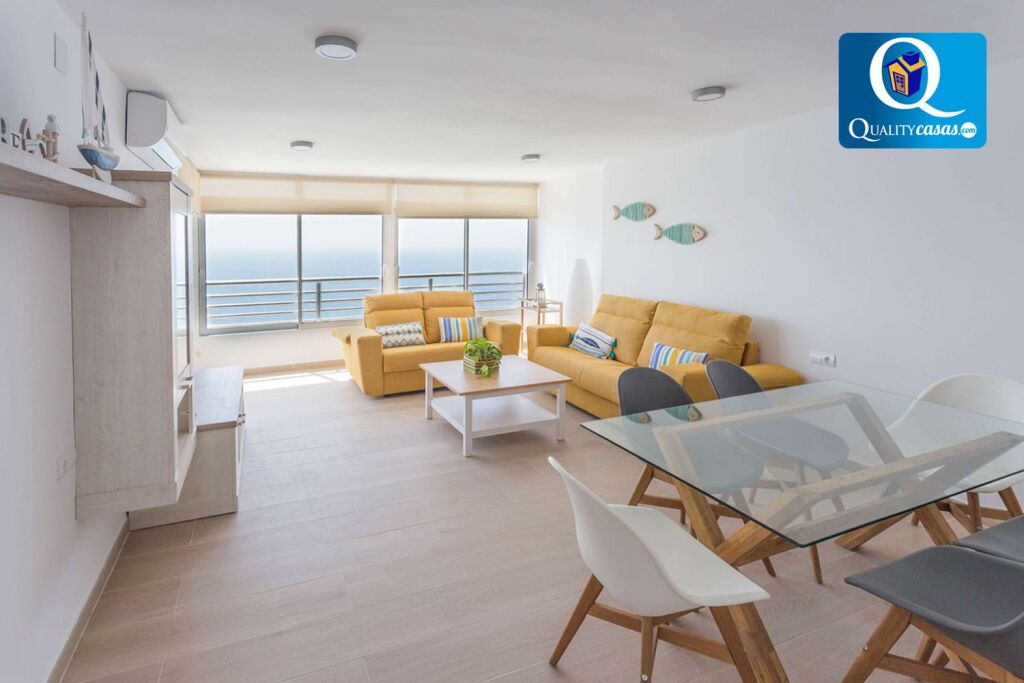 El amplio y luminoso salón cuenta con dos ambientes, grandes ventanales y terraza acondicionada con insuperables vistas al mar. La cocina independiente se encuentra totalmente equipada y cuenta con todos los electrodomésticos. La vivienda dispone de 2 dormitorios y 1 baño completo.