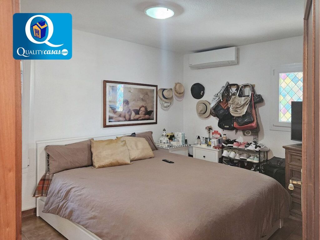 La vivienda dispone de 4 dormitorios exteriores con armarios empotrados y 3 baños completos, disponiendo el dormitorio principal de balcón al jardín y baño en suite. En planta superior cuenta con amplia terraza solárium con excelentes vistas, disponiendo además la propiedad de garaje cerrado, zona de parking y trastero.