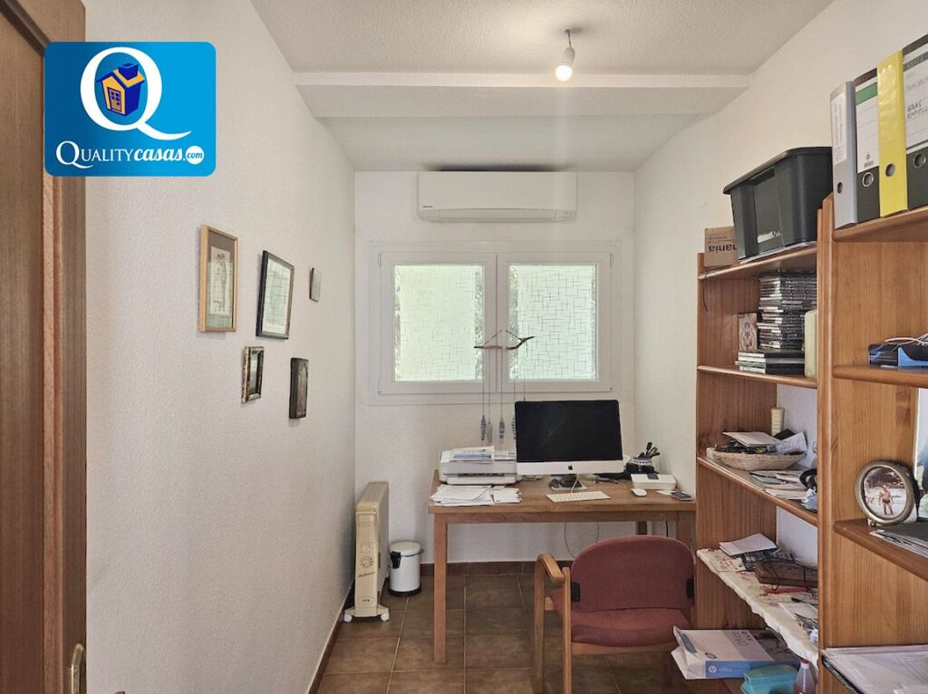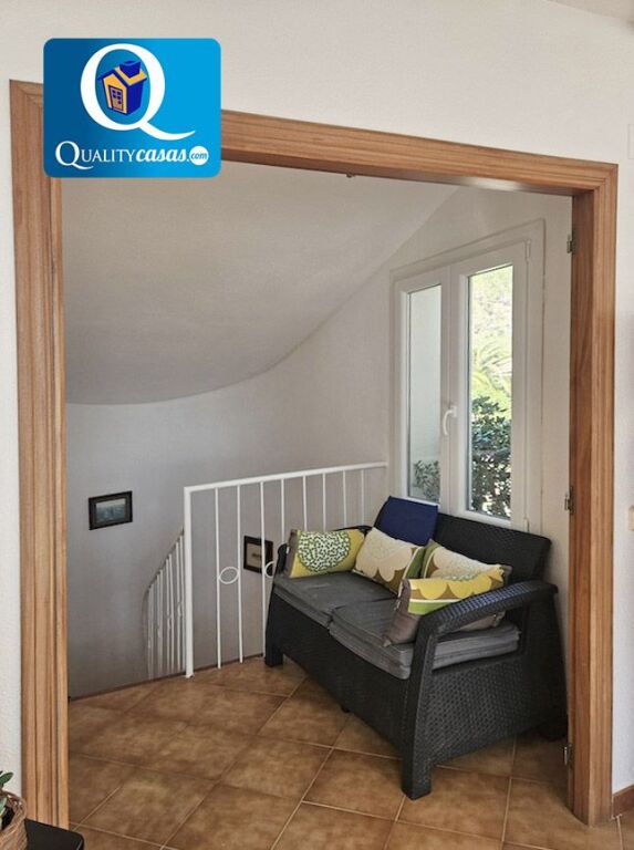 La vivienda dispone de 4 dormitorios exteriores con armarios empotrados y 3 baños completos, disponiendo el dormitorio principal de balcón al jardín y baño en suite. En planta superior cuenta con amplia terraza solárium con excelentes vistas, disponiendo además la propiedad de garaje cerrado, zona de parking y trastero.