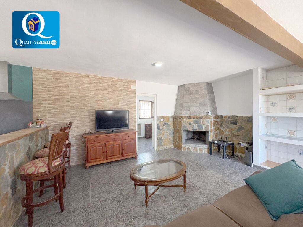 El porche terraza da paso al espacioso y luminoso salón con dos orientaciones y dos ambientes, desde donde podemos contemplar el jardín o reunirnos junto a la chimenea. La cocina, con vistas exteriores y zona de office, se integra en el salón compartiendo su luminosidad, se encuentra totalmente equipada y cuenta con electrodomésticos. La vivienda dispone de 3 dormitorios exteriores y 1 baño completo, contando además con trastero y zona de barbacoa con cocina en construcción independiente, formando un amplio patio terraza en la zona exterior.