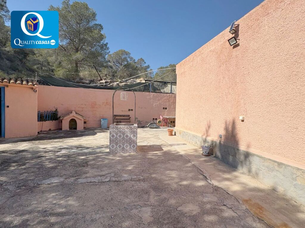 Un acogedor chalet en tranquila y bien comunicada zona de El Campello (Venta Lanuza - Covetes), muy bien localizado y con magníficas vistas panorámicas de mar y montaña. Cuenta con una gran parcela de 57.000 m2 acondicionada en parte como jardín privado, con amplias zonas de arbolado y miradores, disponiendo de instalación de placas solares, generador de electricidad y aljibe con pozo para recogida de aguas pluviales.