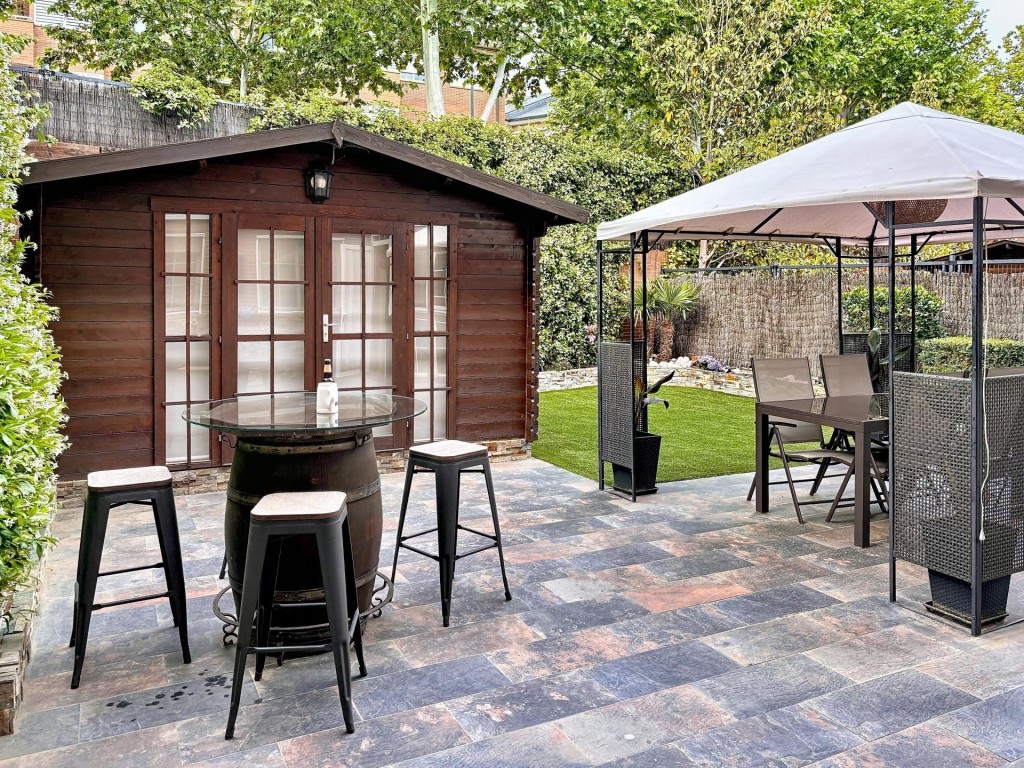 Incluye una cabaña-office independiente, ideal para teletrabajar o como habitación de invitados. La vivienda es muy luminosa en todas sus estancias y se entrega con la cocina reformada según proyectada en la foto.