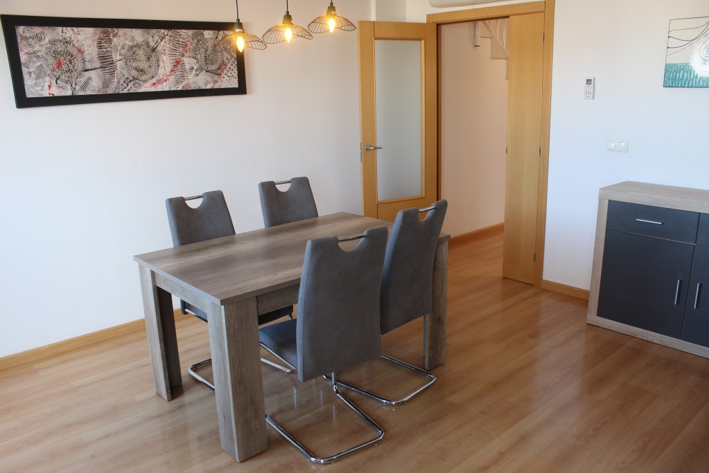 Atico Duplex en venta, 4 habitaciones, 2 cuartos de baños, suelo laminado, armarios empotrados, cocina con todos los electrodomésticos, terraza, aire acondicionado, piscina comunitaria, la zona esta muy bien comunicada, salida directa de autopista, a tan solo 8 km de las playas de Denia y a 5 minutos del Centro Comercial La Marina.
