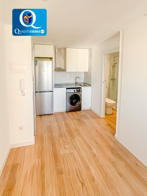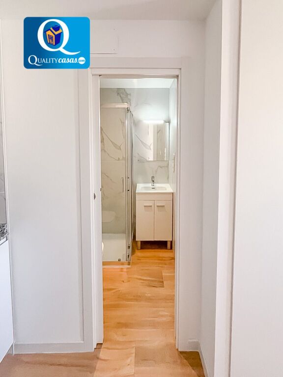 El luminoso salón, bien comunicado, dispone de amplios ventanales y cocina office integrada, totalmente equipada y con electrodomésticos. La vivienda cuenta con 1 dormitorio con armarios empotrados (2 en toda la propiedad) y 2 baños completos.