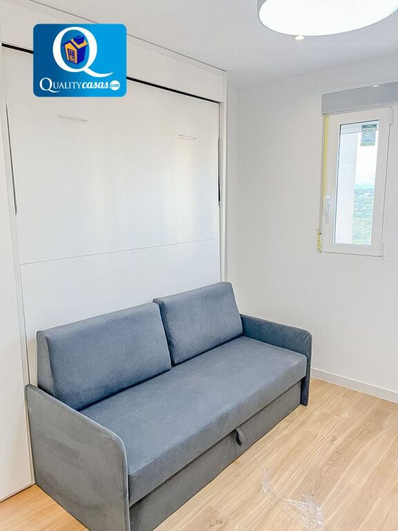El luminoso salón, bien comunicado, dispone de amplios ventanales y cocina office integrada, totalmente equipada y con electrodomésticos. Distribuido como loft, cuenta con zona de dormitorio en el salón y 1 baño completo.