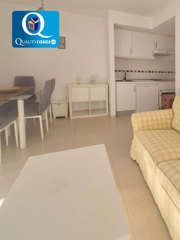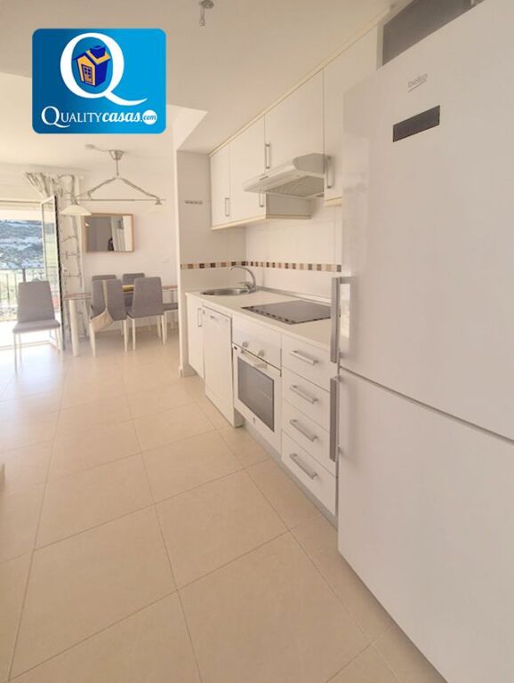 El luminoso salón dispone de magnífica terraza con vistas despejadas y de montaña. La cocina office, comunicada con el salón y compartiendo su luminosidad, se encuentra totalmente equipada y cuenta con todos los electrodomésticos. La vivienda cuenta con 2 dormitorios con armarios empotrados y 1 baño completo.