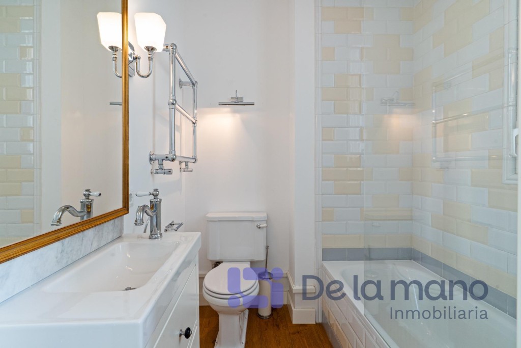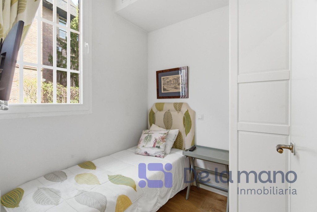 LUMINOSA PLANTA BAJA EN CHAMARTÍN CON VISTAS AL JARDÍNSIN HONORARIOS DE AGENCIA PARA EL INQUILINOInmobiliaria DE LA MANO alquila esta vivienda cuya ubicación se encuentra en el exclusivo distrito de Chamartín, en la Avenida de Pio XII. Esta urbanización privada cuenta con zonas ajardinadas, piscina, gimnasio y otras zonas comunes, pero además dispone de portero físico y posibilidad de alquilar un amplio trastero o una cómoda plaza de aparcamiento en el mismo complejo. En cuanto a la vivienda, tiene una gran luminosidad, una amplitud y una distribución de ensueño con techos altos y un estilo inglés muy cuidado que brinda una personalidad totalmente diferente a lo estándar en Madrid.La distribución de la vivienda se caracteriza por sus amplias estancias, su funcionalidad y modernidad, con tres dormitorios con sendos baños completos en suite, el principal de ellos también con vestidor; una cocina de gran formato totalmente equipada y con vistas al jardín y una zona social diáfana con un coqueto aseo de cortesía. Todas las estancias de la casa cuentan con grandes ventanales que ofrecen vistas a los jardines privados de la finca, favoreciendo el carácter privado y silencioso propios de la vivienda. Cada detalle ha sido cuidadosamente mimado para cubrir las aspiraciones de las familias más exigentes. En cuanto al barrio, podemos decir que es una zona residencial consolidada, segura y tranquila, conectada perfectamente con la M-30 y dotada de instituciones educativas de prestigio como el Colegio Nuestra Señora del Recuerdo, el Sagrado Corazón o la International School of Madrid. Sin duda, un entorno ideal para familias que quieran desarrollar un proyecto vital de gran calidad los próximos años.Si tienes ganas de conocer esta vivienda y crees que podría ser tu hogar ideal no dudes en contactar con nosotros. Buscamos perfiles de demostrada solvencia económica, familias que quieran hacer de este su nuevo hogar por largo tiempo y sin honorarios de agencia para el inquilino. Llámanos o escríbenos y estaremos encantados de enseñarte esta vivienda.