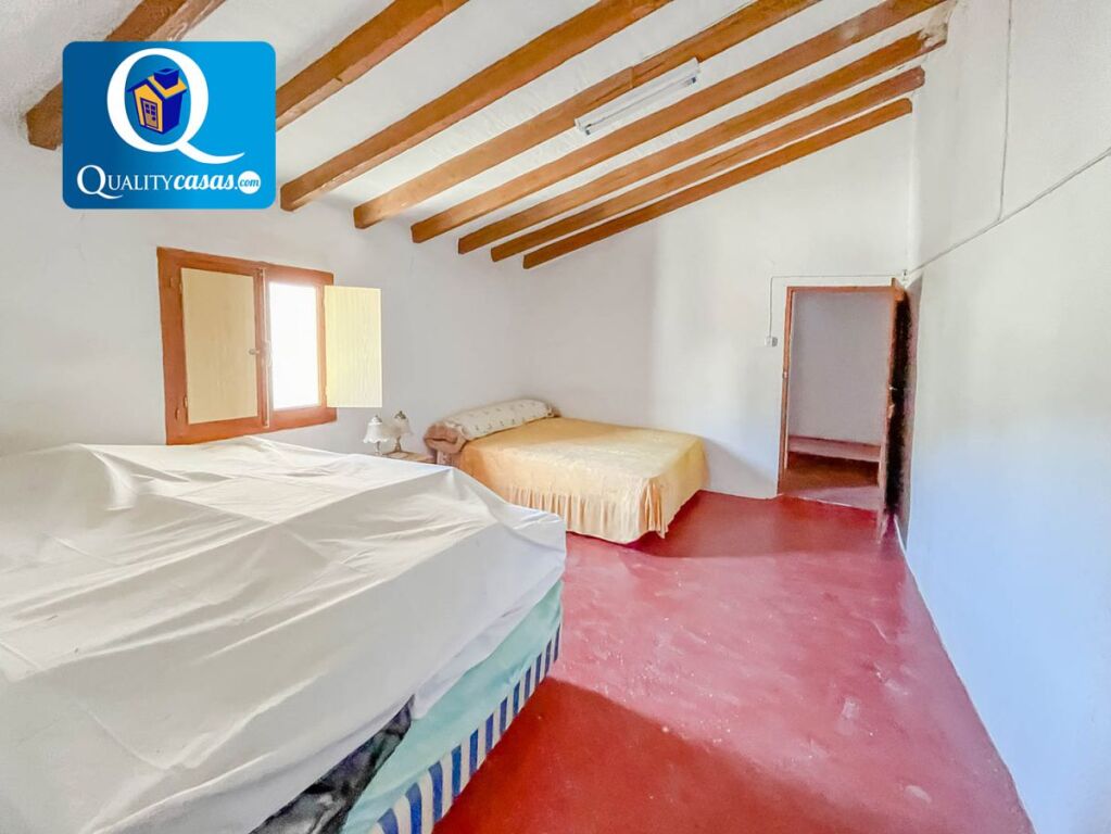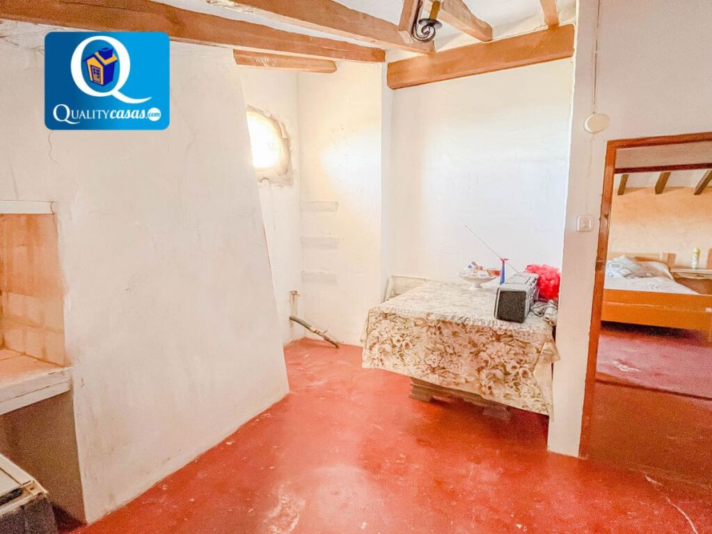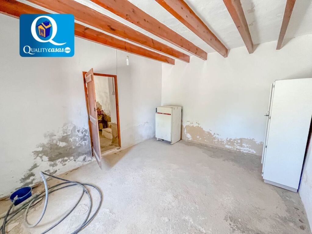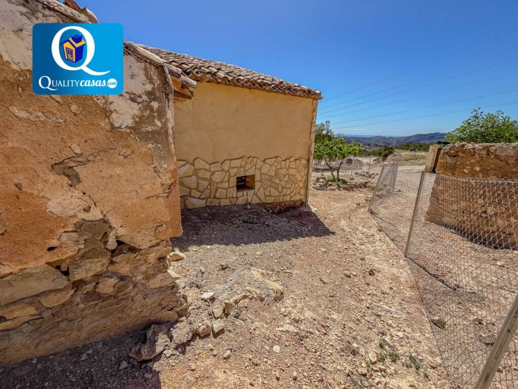 Dispone de suelos de cemento y cerámica, techos con vigas de madera originales y muros de piedra de gran grosor, que sugieren una posible rehabilitación con estilo rústico. Actualmente no dispone de electricidad, pero cuenta con la posibilidad de instalación mediante placas solares. La parcela dispone de balsa y servicio de agua de regadío desde Castalla.