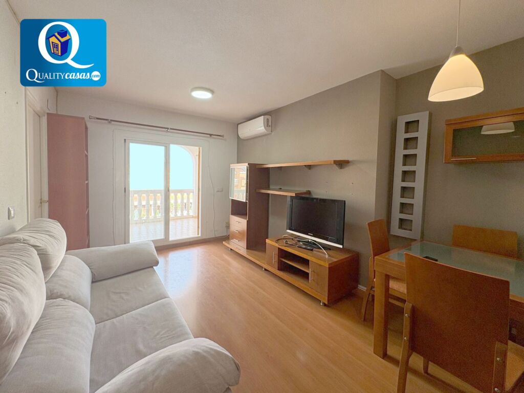 El luminoso salón, muy bien comunicado, dispone de amplia terraza a la avenida. La moderna cocina office se encuentra totalmente equipada, cuenta con todos los electrodomésticos y se comunica con el salón, compartiendo su luminosidad. La vivienda cuenta con 2 dormitorios con armarios empotrados (3 en toda la vivienda) y 1 baño completo.