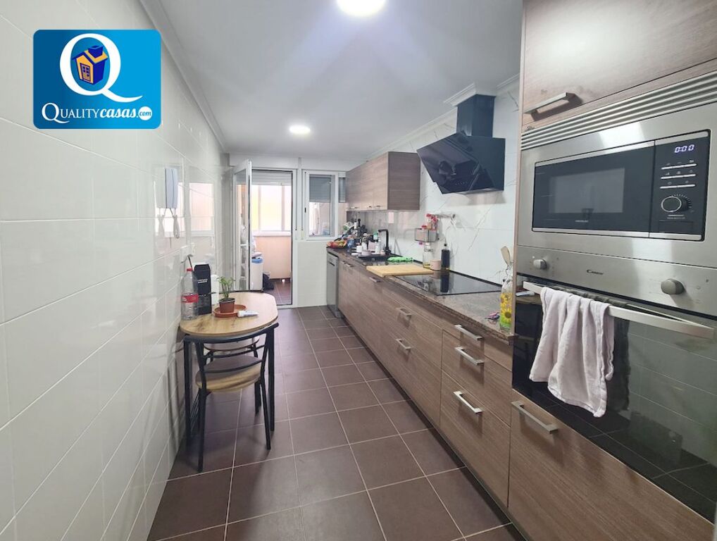 El amplio y luminoso, bien comunicado, dispone de dos ambientes y amplioas ventanales al paseo. La cocina independiente, con zona de office, se encuentra equipada y dispone también de galería acristalada. La vivienda cuenta con 3 habitaciones y 2 baños completos, disfrutando el dormitorio principal de acceso al patio de la vivienda.