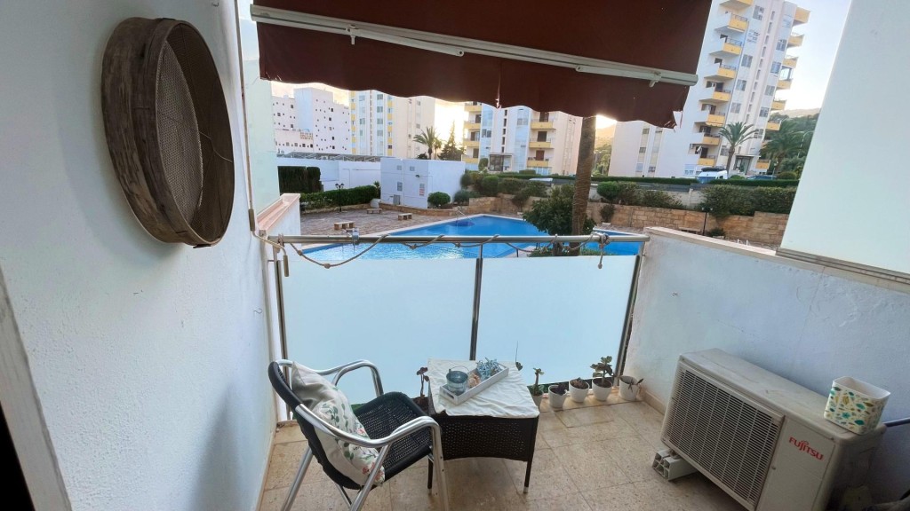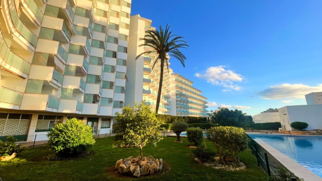 El apartamento se completa con un baño independiente y forma parte de una comunidad que ofrece piscina y cuidados jardines, aportando un valor añadido tanto para uso propio como para rentabilidad.