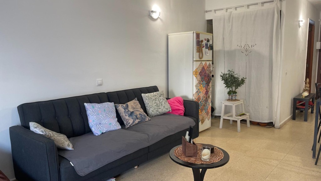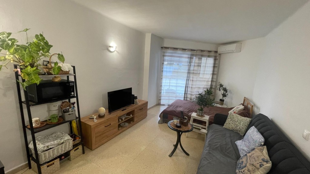 La vivienda, situada en primera planta, cuenta con aproximadamente 47 m² distribuidos de forma práctica y funcional. Dispone de un espacio principal tipo salón-dormitorio con cocina integrada, que aprovecha al máximo la superficie y la entrada de luz natural, creando un ambiente cómodo y versátil.