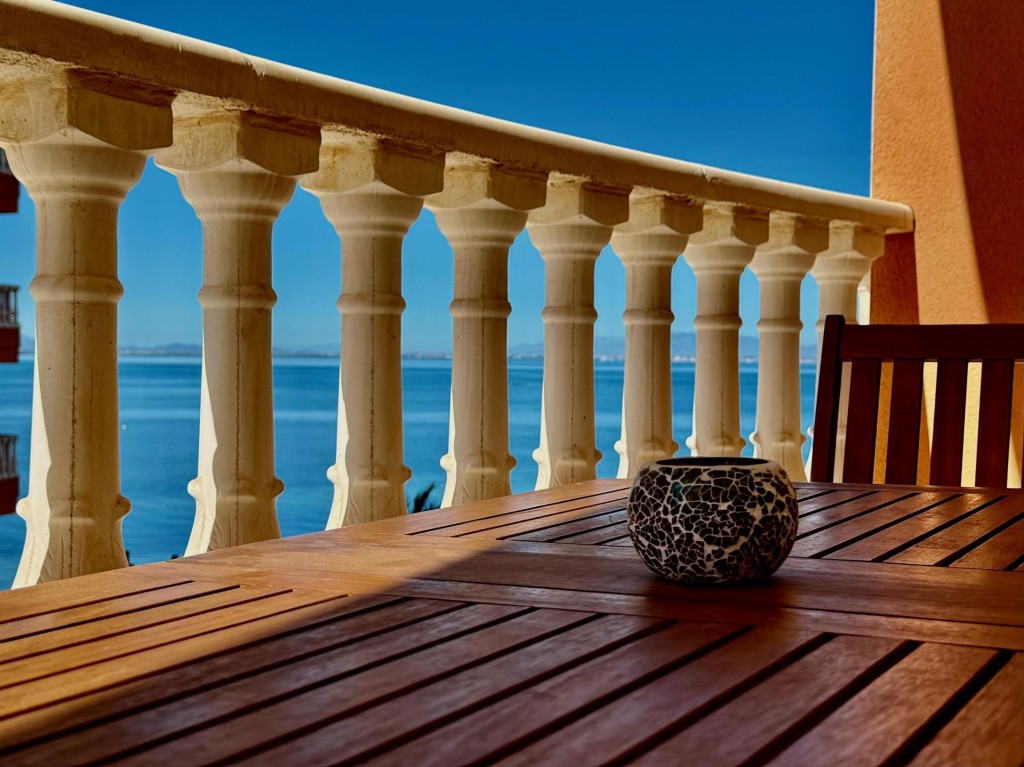 Esta estupenda vivienda ubicada en Residencial Mares II, una de las zonas más demandadas de La Manga del Mar Menor, en el kilómetro 7, ideal tanto como residencia habitual, segunda vivienda La propiedad dispone de 2 amplios dormitorios y 2 baños completos, uno de ellos en suite dentro del dormitorio principal, aportando comodidad e independencia.Se vende totalmente amueblada, lista para entrar a vivir, y equipada con aire acondicionado tipo split para garantizar confort durante todo el año.Cuenta con ventanas de PVC con doble acristalamiento Climalit, que proporcionan un excelente aislamiento térmico y acústico.Uno de sus grandes atractivos son sus dos terrazas:Desde el salón y el dormitorio principal se accede a una agradable terraza con bonitas vistas al Mar Menor, perfecta para desayunar o relajarse al atardecer.El segundo dormitorio y la cocina tienen salida a otra terraza independiente, aportando luminosidad y ventilación cruzada. Urbanización con excelentes zonas comunes:✔ Piscina comunitaria✔ Zona infantil✔ Área de barbacoa✔ Plaza de aparcamiento asignada✔ Acceso excelente y directo al Mar MenorUbicado en una zona privilegiada, rodeado de todos los servicios y con el mar a pocos pasos.Una oportunidad única para disfrutar de La Manga todo el año.Si buscas una vivienda lista para entrar, con espacio exterior, vistas al mar y excelentes zonas comunes, esta puede ser la tuya.📞 Contacta para más información o concertar visita.Gastos compraventa y honorarios 1% mas iva no incluidos