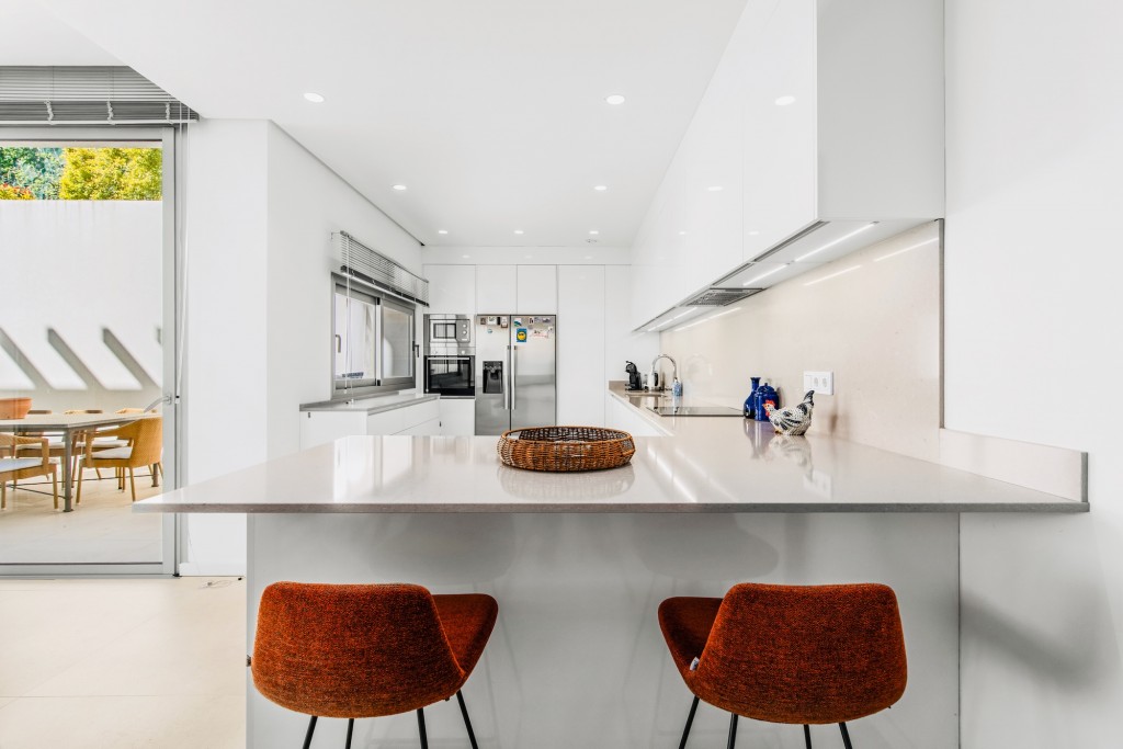 Desde la entrada, le cautivarán los amplios volúmenes (164m² útiles) y la luminosidad natural. La planta principal se organiza en torno a un gran espacio de vida de 74m² donde el salón, el comedor y la cocina moderna armonizan perfectamente. Grandes ventanales de suelo a techo inundan el interior de luz durante todo el día, ofreciendo al mismo tiempo magníficas vistas de las colinas circundantes y del mar.