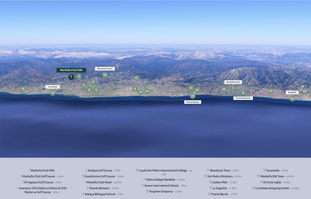 Situado en Benahavís, en el exclusivo enclave entre el renombrado Marbella Club Golf Resort y el icónico Anantara Villa Padierna Palace, esta propiedad excepcional se encuentra a solo 20 minutos de Estepona, a 30 minutos del centro de Marbella y a 55 minutos del aeropuerto internacional de Málaga.