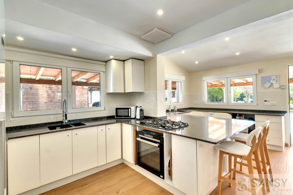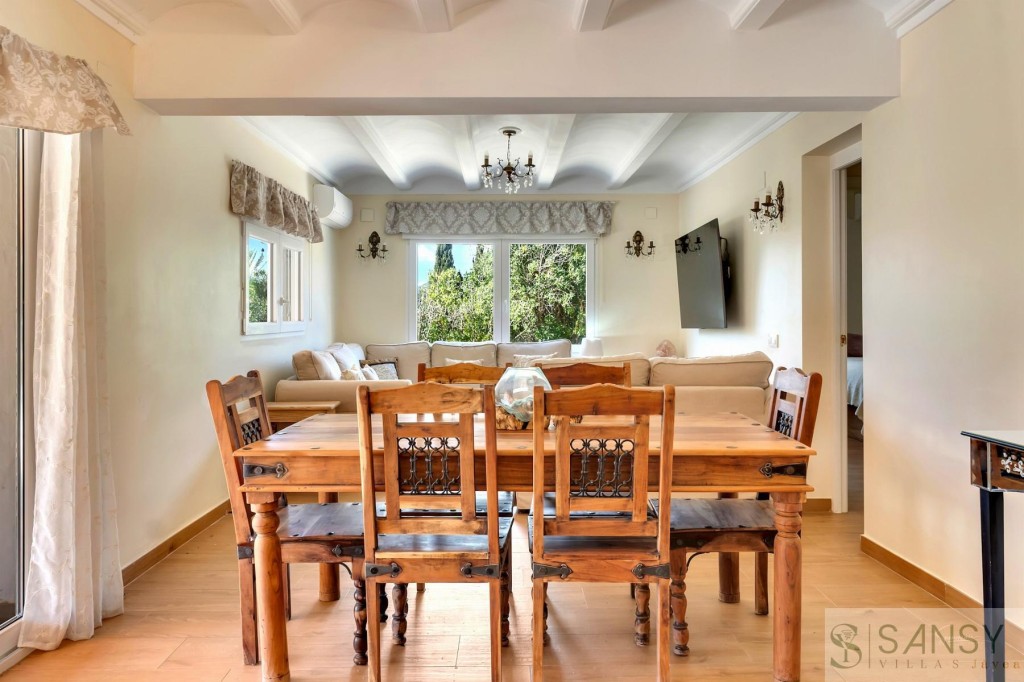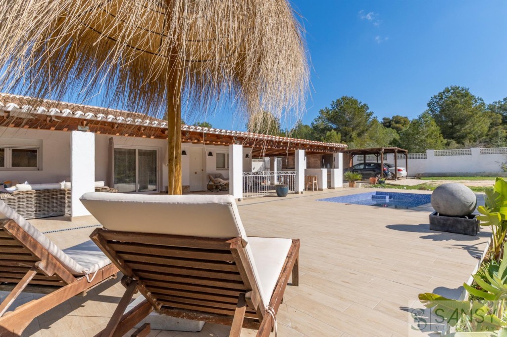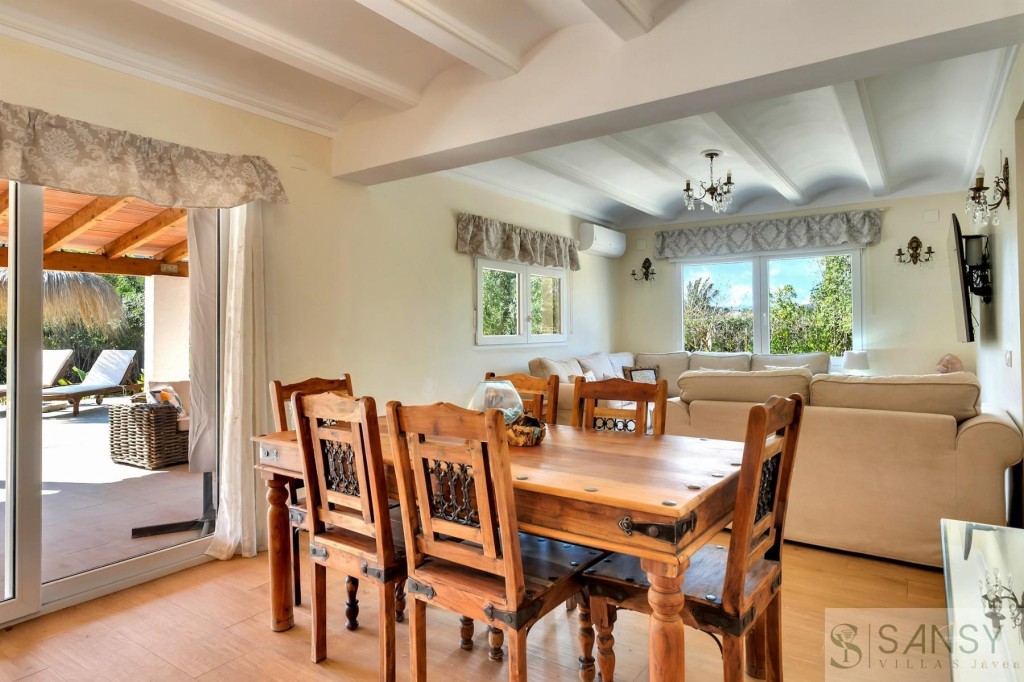 Chalet Unifamiliar, 3 dormitorios, 2 baños, 3 garajes, Buen estado, en Jávea-Xàbia, Alicante Villa privada reformada de una sola planta con amplia terraza y jardín consolidado en una parcela de 2000 m² en PinosolPreciosa villa de una sola planta, recientemente reformada, con 130 m² de superficie habitable, que ofrece 3 amplias habitaciones dobles, incluyendo una gran suite principal con vestidor y baño en suite, además de un baño familiar independiente y un aseo de invitados.La propiedad cuenta con una amplia cocina familiar, ideal para el día a día y para recibir invitados, junto con luminosas y confortables zonas de estar.En el exterior, una gran terraza cubierta que rodea la casa ofrece vistas a un generoso jardín consolidado y de gran belleza, todo ello en una impresionante parcela privada de 2000 m², creando un entorno muy íntimo perfecto para relajarse o comer al aire libre.Con una ubicación privilegiada en Pinosol, cerca de la playa, comercios locales y dos prestigiosos colegios internacionales, esta villa se encuentra a poca distancia en coche de las populares localidades costeras de Jávea y Moraira.La villa también dispone de tres dependencias anexas muy útiles, con un excelente potencial para almacenamiento, taller, despacho o estudio.