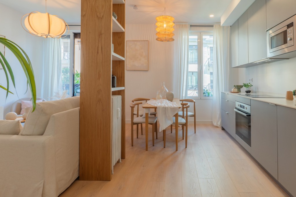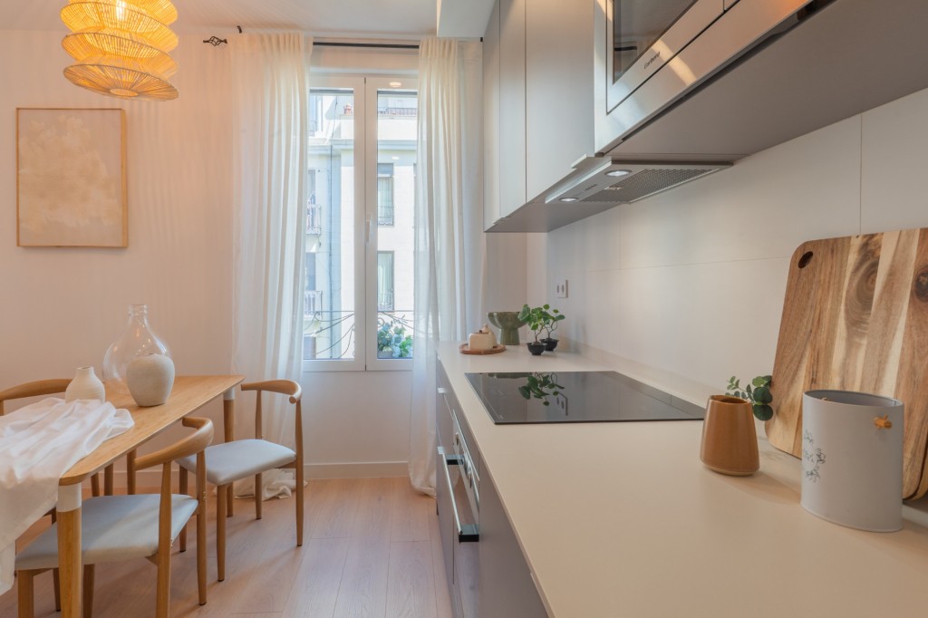 La propiedad tiene una reforma integral cuidada al detalle que está recién terminada y lista para entrar a vivir. Cuenta con pre-instalación de aire acondicionado en todas las estancias, suelos de tarima de alta resistencia, acabados porcelánicos en el baño y paredes con terminación lisa. Las carpinterías exteriores cumplen con los más altos estándares de eficiencia energética, y tanto la instalación eléctrica como la de fontanería han sido renovadas por completo. La cocina se entrega totalmente equipada con electrodomésticos integrados en el mobiliario.