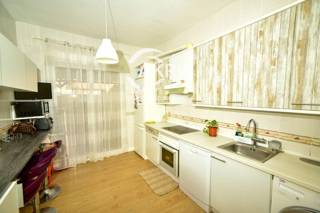 Suelos de gres y tarima, paredes en liso, carpintería interior de roble, armarios empotrados en todas las estancias, puerta de entrada acorazada, cerramientos climalit y rejas en todas las puertas y ventanas.