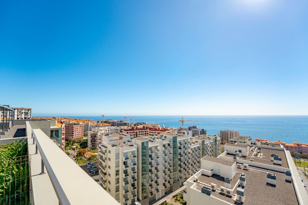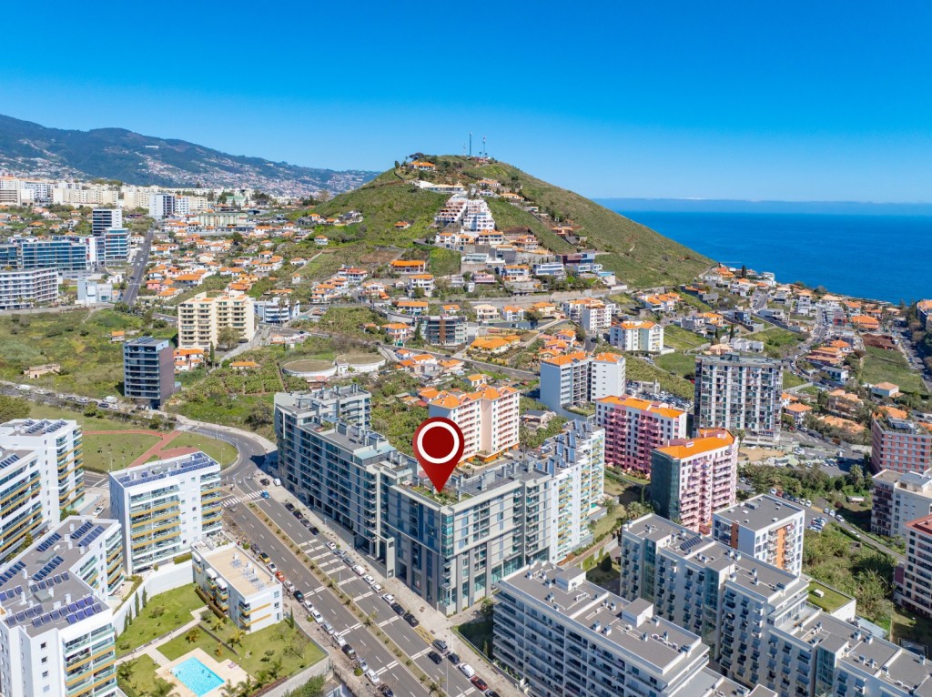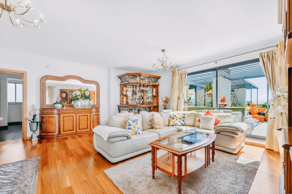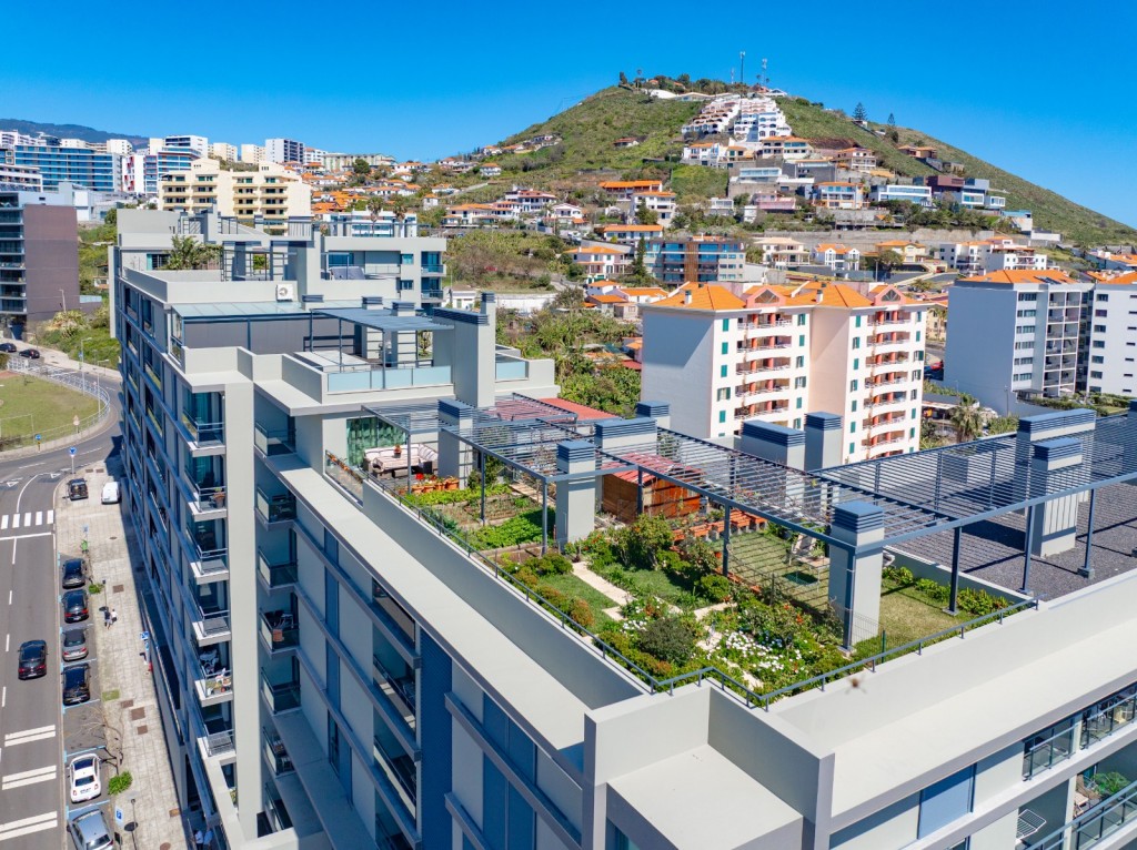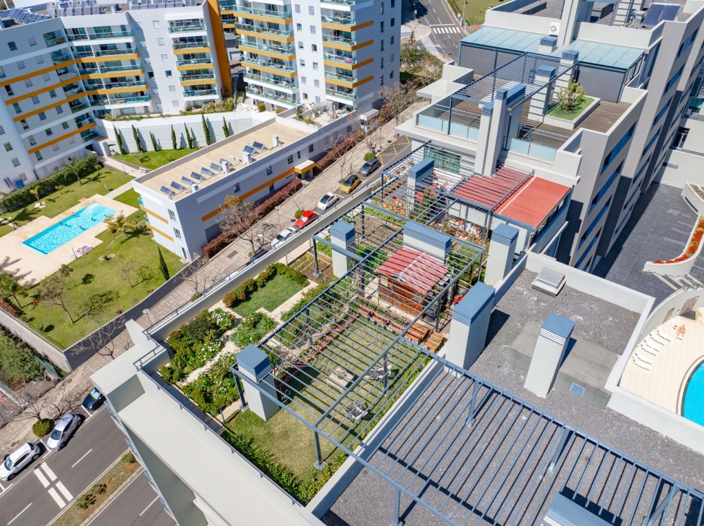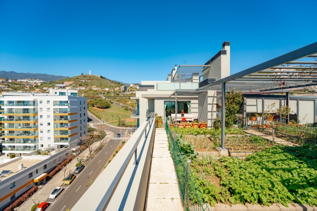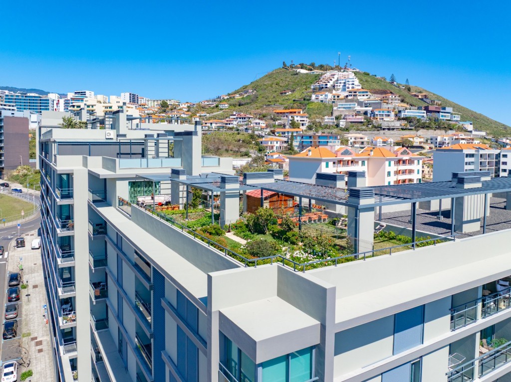 Si estás buscando vivienda en São Martinho, sabrás que disponer de un verdadero espacio exterior es algo poco común. Aquí no hablamos de un simple balcón, sino de una auténtica terraza de 218 m², prácticamente un jardín en altura.