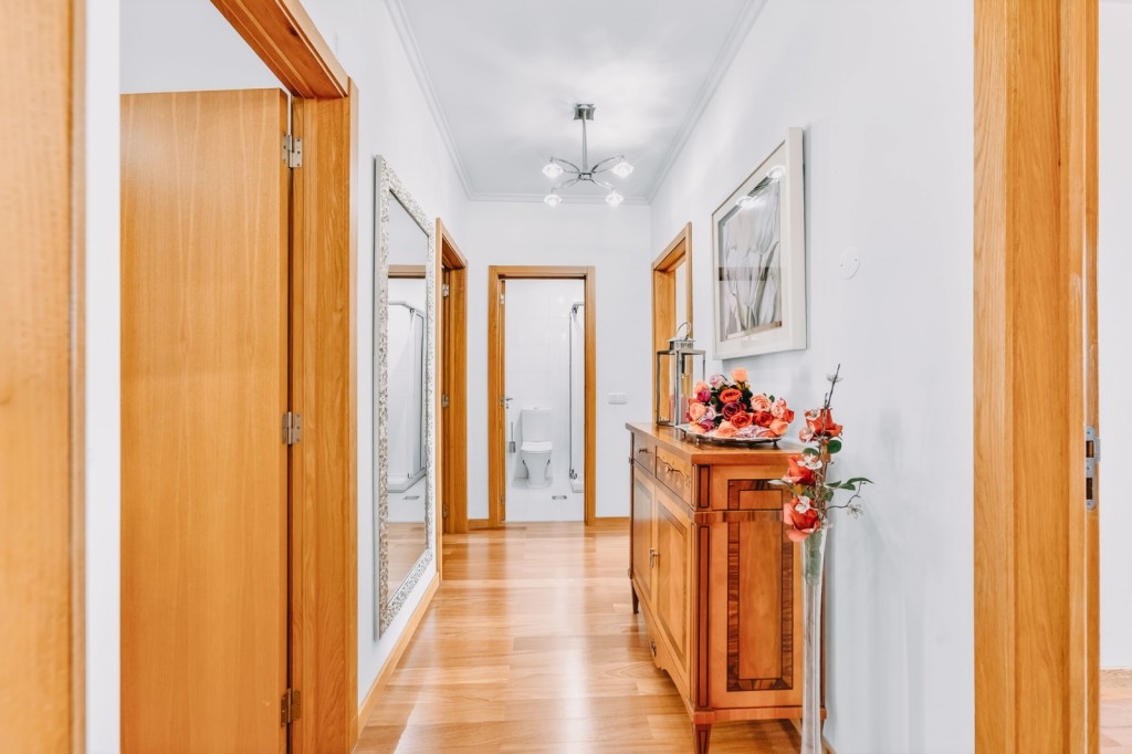 Se trata de una vivienda pensada para una familia que valora el confort, la privacidad y una buena distribución. Al salir del ascensor, el pasillo ofrece dos accesos independientes: uno que conduce directamente a la zona social, ideal para recibir invitados, y otro que da acceso a la zona privada de los dormitorios, garantizando total discreción y comodidad en el día a día.