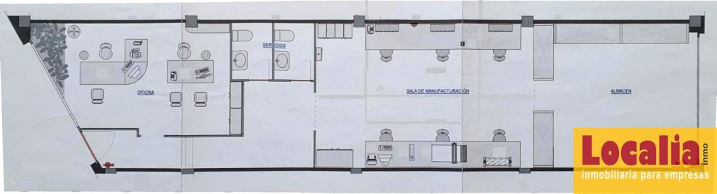Distribución actual: oficina, taller y almacén