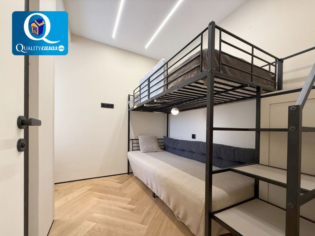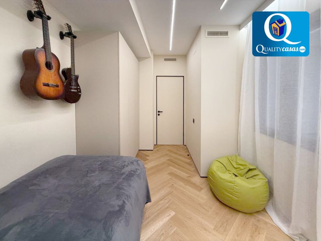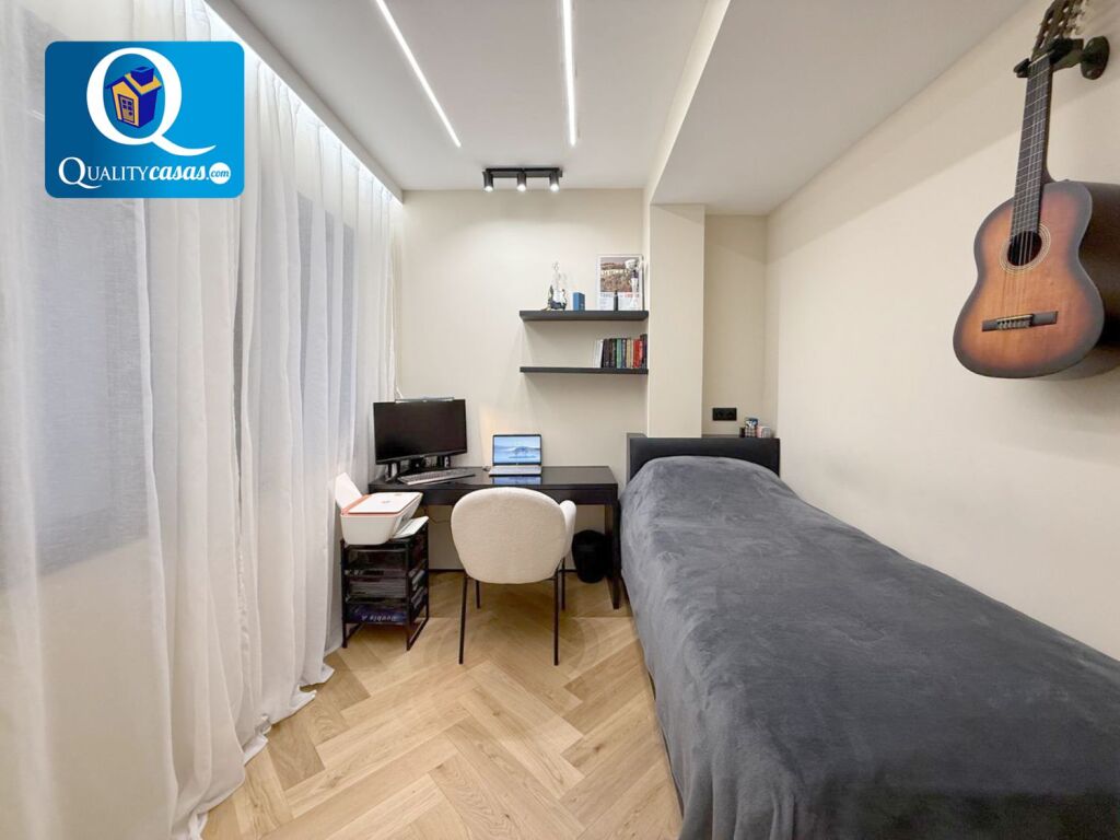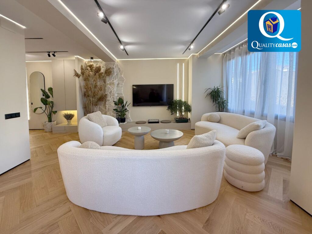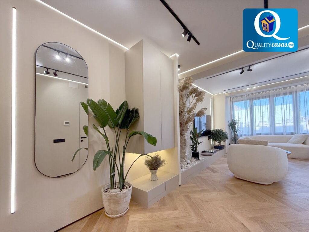 Con una construcción sólida y de calidad, la vivienda se ofrece semiamueblada, se encuentra en inmejorable estado y dispone de altas calidades, contando con suelos en parquet macizo, techos en cámara de pladur con iluminación led integrada, AA.CC centralizado con bomba de calor, puerta blindada, carpintería de roble lacada en blanco y ventanas aluminio climalit, entre otras muchas mejoras.