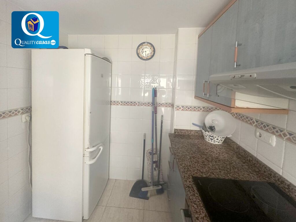 El amplio y luminoso salón, muy bien comunicado, dispone de amplio balcón con vistas despejadas. La cocina independiente, con zona de office, se encuentra totalmente equipada y cuenta con todos los electrodomésticos. La vivienda cuenta con 2 dormitorios (el principal con armarios empotrados), 1 baño completo y 1 aseo.