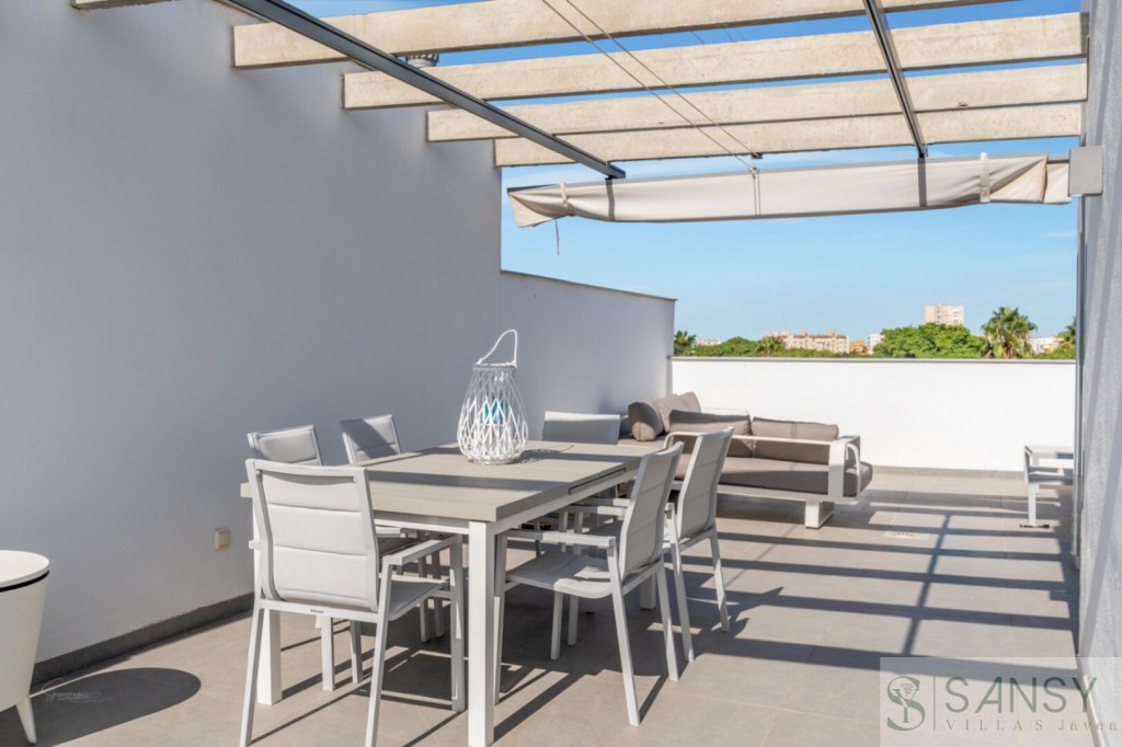 Apartamento 3 dormitorios, 3 baños, 0 garajes, Buen estado, en Jávea-Xàbia, Alicante 3 HABITACIONES - ESPACIOSO - GRAN TERRAZA - BUENA ORIENTACIÓN - MODERNO Y ELEGANTE - GARAJE - TRASTEROModerno apartamento tríplex de 118 m², construido en 2020, que combina a la perfección modernidad, amplitud y confort. Su diseño eN 3 niveles, junto con un gran balcón y una terraza privada en la azotea, hacen de esta vivienda una oportunidad única. Distribución funcional y luminosaPlanta principal Amplio salón-comedor con acceso directo a un balcón espacioso con vistas a la piscina comunitaria y campos de cultivo, moderna cocina equipada con zona de lavandería, una habitación doble y un cuarto de baño completo.Planta inferior Dos habitaciones adicionales y un segundo baño, ideales para familia o invitados.Última planta La auténtica maravilla de la vivienda... una gran terraza privada con cocina de verano, barbacoa, ducha exterior, aseo y las mismas vistas que desde el salon de la casa, unas vistas impresionantes a campos de cultivo protegidos, lo que garantiza privacidad y un entorno natural sin construcciones futuras. Calidades y extrasPersianas motorizadasAire acondicionado y calefacción por conductosSistema de alarmaPlaza de garaje subterráneo espaciosa y trastero Entorno y urbanizaciónUbicado en una urbanización moderna con dos piscinas, una infantil y otra de gran tamaño de 53 metros de largo para adultos, este apartamento es perfecto tanto para vivir todo el año, para disfrutarlo como residencia vacacional o como inversión para alquiler. Un hogar moderno, espacioso y con todo lo que necesitas para disfrutar del mejor estilo de vida mediterráneo.