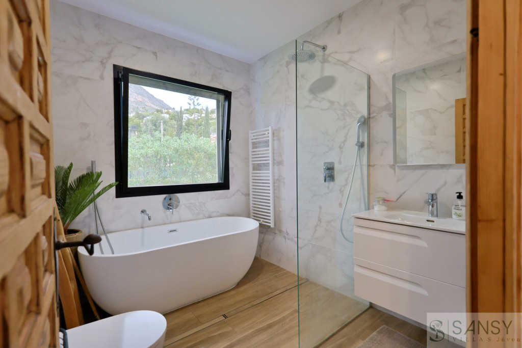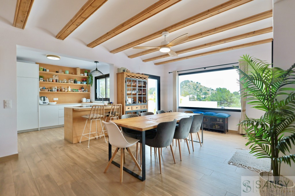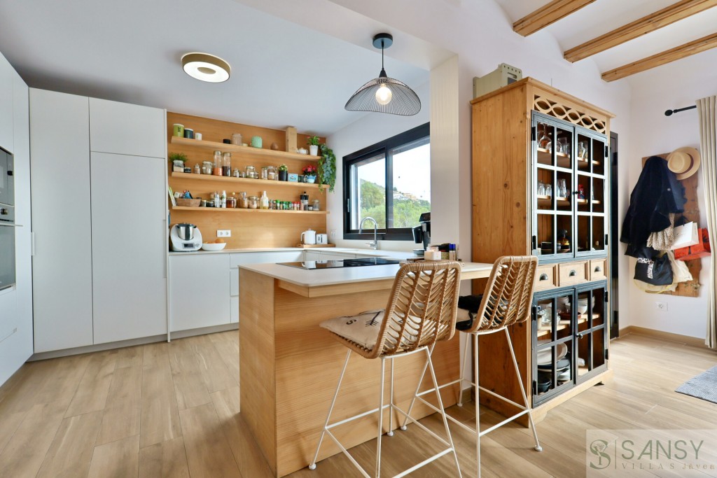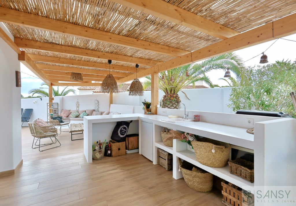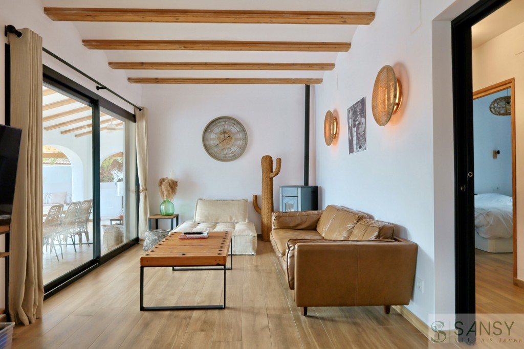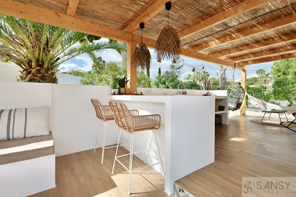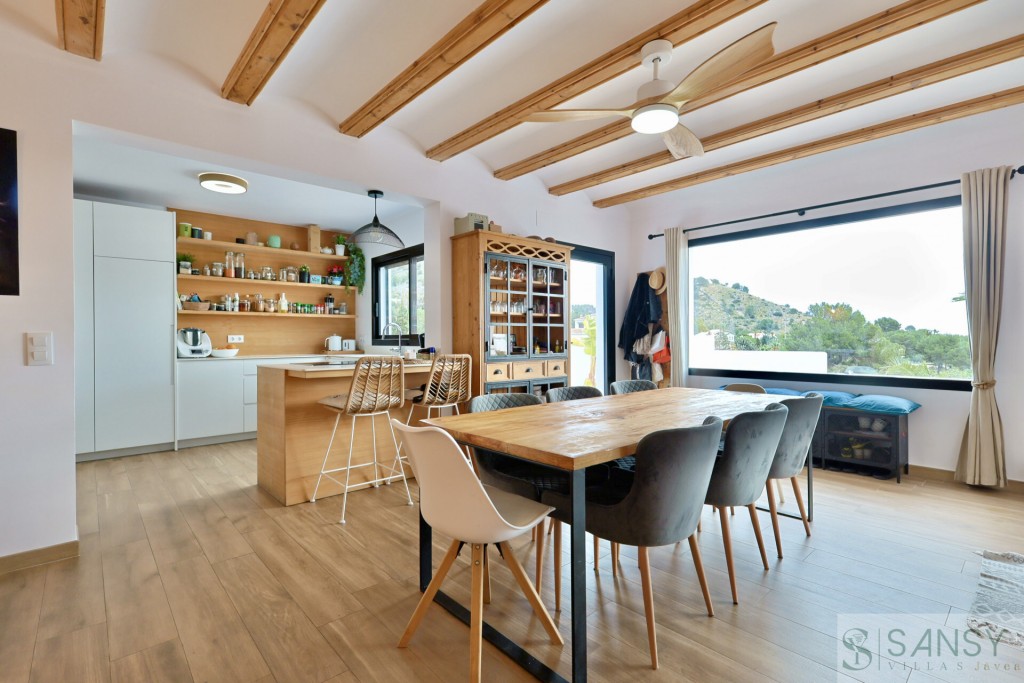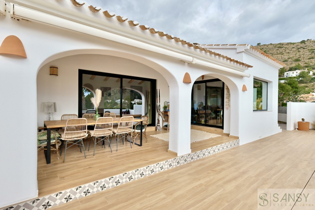 Villa 4 dormitorios, 4 baños, 2 garajes, Buen estado, en Jávea-Xàbia, Alicante Villa de estilo ibicenco en venta en Jávea Zona CastellansEn la prestigiosa zona de Castellans, en Jávea, a solo 15 minutos a pie del casco antiguo,se encuentra esta elegante villa de una sola planta, situada al final de un camino sin salidaque garantiza máxima privacidad y tranquilidad. Su orientación y altura permiten disfrutar deagradables vistas al mar en un entorno residencial exclusivo.La propiedad se asienta sobre una parcela de 1.100 m² y ofrece 192 m² construidos más uncarport de 40 m². Reformada íntegramente en 2022, combina la esencia mediterránea conacabados contemporáneos de alta calidad. Se vende completamente amueblada yequipada, lista para entrar a vivir.El interior destaca por su luminosidad y amplitud. Dispone de hall de entrada, unespectacular salón-comedor con cocina abierta de 50 m², cuatro dormitorios con armariosempotrados, tres baños completos, un aseo de cortesía y zona de lavandería.La zona de descanso incluye dos dormitorios en suite y otros dos que comparten baño. Lasuite principal cuenta con acceso directo a una terraza privada, perfecta para disfrutar delexterior con total intimidad.El exterior ha sido diseñado para vivir el auténtico estilo mediterráneo piscina de 6 x 11 m,amplias terrazas de aproximadamente 150 m², naya cubierta, cocina de verano y zonalounge bajo pérgola de madera de 40 m². Una vivienda cómoda y de bajo mantenimientodurante todo el año.En la parte posterior encontramos un pequeño campo de fútbol, mesa de ping-pong y zonade relax. El carport permite aparcar dos coches y scooters, además de disponer de punto decarga para vehículo eléctrico.Equipada con 14 paneles solares, dos termos eléctricos, aire acondicionado frío/calor entodas las estancias y estufa en el salón. La instalación está preparada para futuracalefacción a gas.Orientada hacia la isla de Ibiza y estratégicamente ubicada a 1h15 de los aeropuertosinternacionales de Valencia y Alicante, ofrece excelente conexión con localidades comoDénia, Moraira, Calpe, Altea y Benidorm.Una villa llave en mano, perfecta como residencia principal, segunda vivienda o inversión de alto nivel en la Costa Blanca.