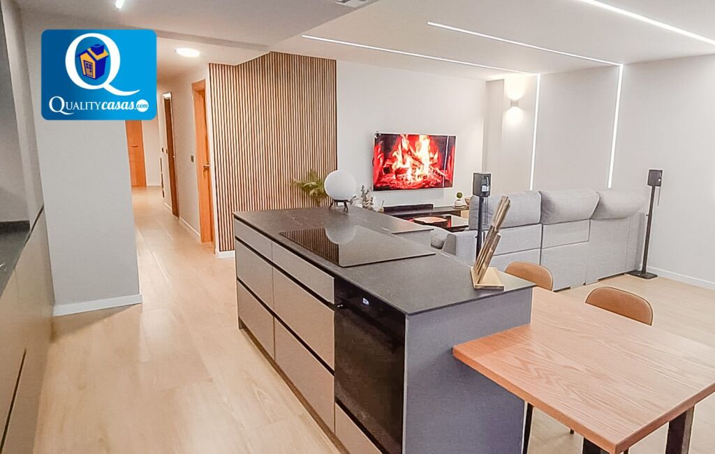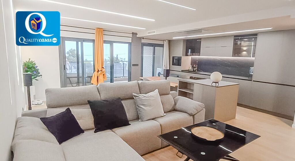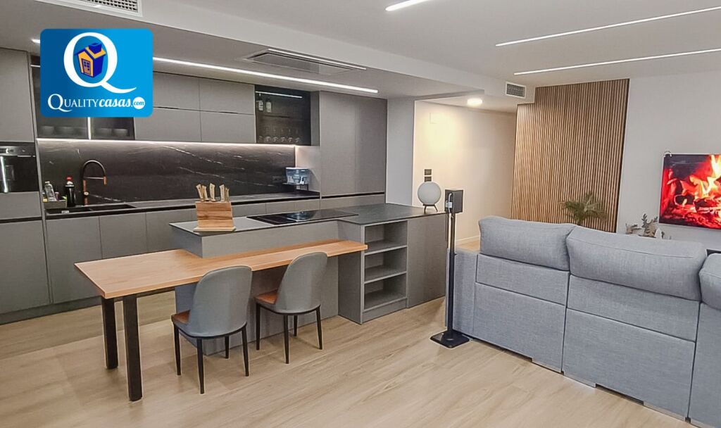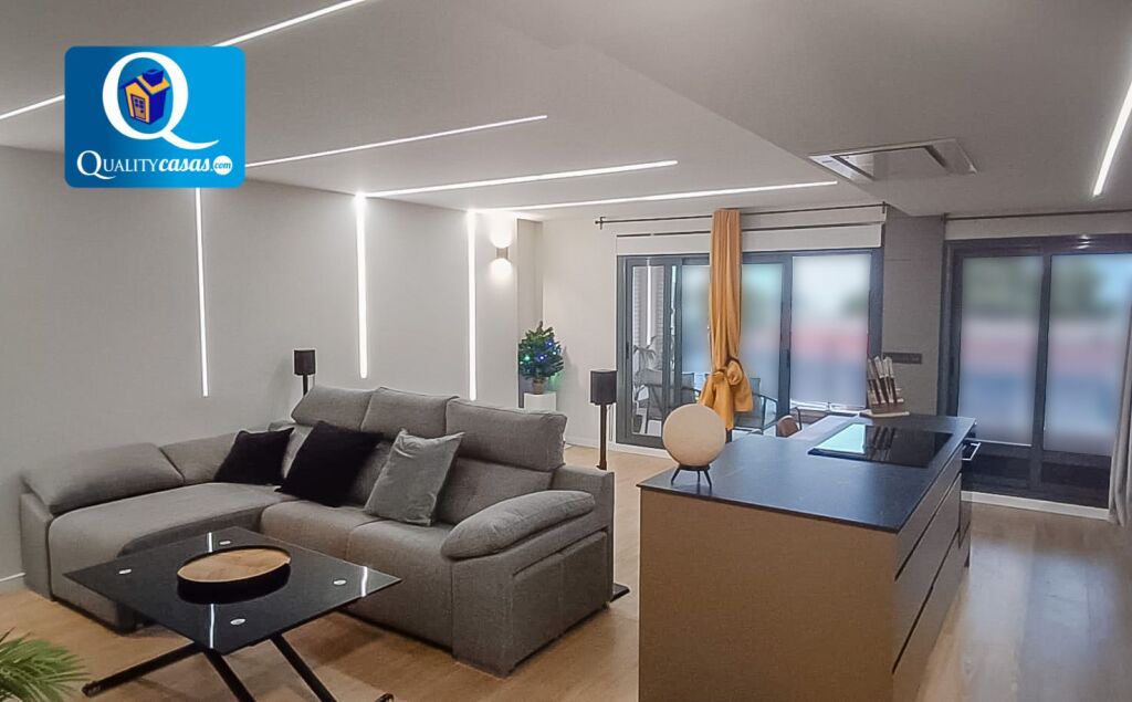 Con una construcción sólida y moderna, y un magnífico estilo de interiores, la vivienda se ofrece totalmente amueblada, se encuentra en inmejorable estado y dispone de primeras calidades, contando con suelos en tarima flotante, techos en cámara de pladur con iluminación led integrada, preinstalación de AA.CC acondicionado, carpintería de pino, puerta blindada y ventanas aluminio climalit, entre otras muchas mejoras.