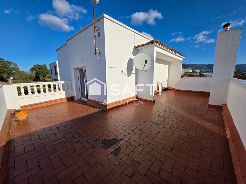 En la planta superior se encuentra un amplio dormitorio con baño que se abre a una gran terraza con impresionantes vistas a la montaña y vistas parciales al mar.