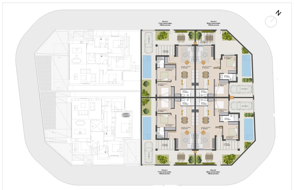 Residencial de villas de Obra Nueva enTorre PachecoVida moderna en un entorno en crecimientoDescubra esta exclusiva promoción de solo 6 villas independientes y pareadas en El Alba Mediterranean Resort, ubicado en Torre Pacheco. Esta zona emergente combina arquitectura contemporánea, ocio y un estilo de vida mediterráneo relajado.Situado entre Terrazas de la Torre Golf y la localidad de Roldán, el complejo ofrece tranquilidad sin renunciar a la cercanía de todos los servicios esenciales.Villas en una sola planta con espacios exterioresEstas modernas viviendas están diseñadas en una sola planta y cuentan con:2 dormitorios y 2 baños (uno en suite)Cocina abierta integrada en un luminoso salónJardín privado con piscina en parcelas en esquinaEspacio de aparcamiento dentro de la parcelaEl diseño prioriza la luz natural y la conexión entre interior y exterior, creando un ambiente cómodo y funcional.Acabados de alta calidadLas villas destacan por sus excelentes prestaciones:Cocina totalmente equipada con electrodomésticosAcabados de Porcelanosa en cocina y bañosCarpintería exterior con doble acristalamientoPersianas motorizadas en dormitoriosPreinstalación de aire acondicionado por conductosArmarios empotrados con cajonesBaños completos con muebles, espejos y mamparasInstalaciones del resort:El complejo ofrece una amplia gama de servicios:Club social con restaurante y zona chill outPiscina comunitariaPistas de pádel y boleraZona infantilFuturo centro comercial dentro del resortUbicación estratégica:Mar Menor – 15 kmCampos de golf cercanos – a pocos minutosAeropuerto Internacional de la Región de Murcia – 20 kmCartagena – 30 kmMurcia – 40 kmAeropuerto de Alicante-Elche Miguel Hernández – 90 kmUna excelente oportunidad en la Costa CálidaEstas villas representan una magnífica oportunidad para adquirir una vivienda moderna en una zona con gran proyección, ideal tanto como residencia habitual, segunda vivienda o inversión.Contáctenos hoy mismo para más información o para concertar una visita.