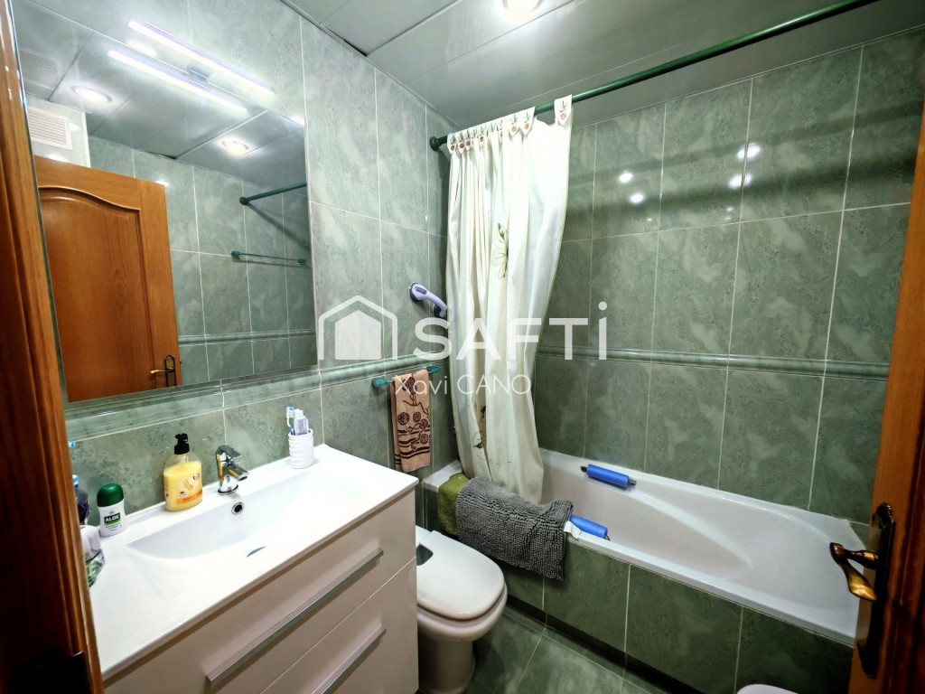 El inmueble dispone de una gran cocina con sitio incluso para una mesa, un amplio lavadero que da a un patio interior, un salón comedor con salida a terraza, un baño completo con bañera, una habitación individual, una habitación doble y una amplia suite con salida a otra terraza.