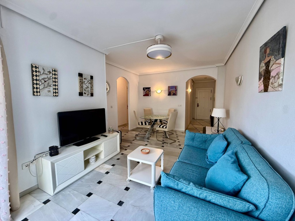 Magnífico piso en primera línea de playa, situado dentro de una cuidada urbanización que ofrece acceso directo al mar. Esta propiedad cuenta con suelos de mármol y una orientación oeste que asegura luminosidad durante toda la tarde, así como agradables vistas laterales al mar. Equipado con aire acondicionado y ventanas Climalit para un mayor confort, el inmueble incluye terraza y lavadero; ideales tanto para disfrutar a diario como para estancias vacacionales. La urbanización destaca por sus completas zonas comunes: amplios jardines bien cuidados, piscina refrescante e instalaciones deportivas como pista de tenis y pádel. Además, hay varias áreas designadas para aparcamiento comunitario lo cual es muy conveniente. Con gastos mensuales inferiores a 125 €, se caracteriza por ser una comunidad equilibrada inmersa en un entorno tranquilo donde predomina buena vecindad. Su ubicación estratégica permite fácil acceso a la autovía principal junto con todos los servicios necesarios cercanos (supermercados, restaurantes). Sin duda alguna esta propiedad combina ubicación inmejorable, calidad constructiva superior y gran potencial — perfecta ya sea como residencia habitual o inversión rentable.