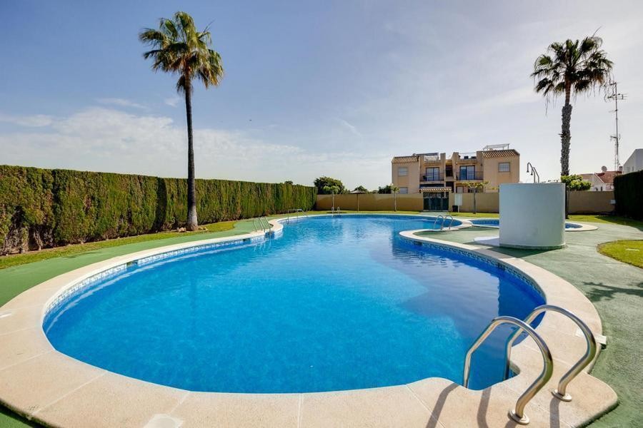 La urbanización ofrece una bonita piscina comunitaria rodeada de zonas verdes, perfecta para desconectar en un entorno cuidado y tranquilo. Además, cuenta con parada de autobús cercana que conecta fácilmente con el centro y las playas.