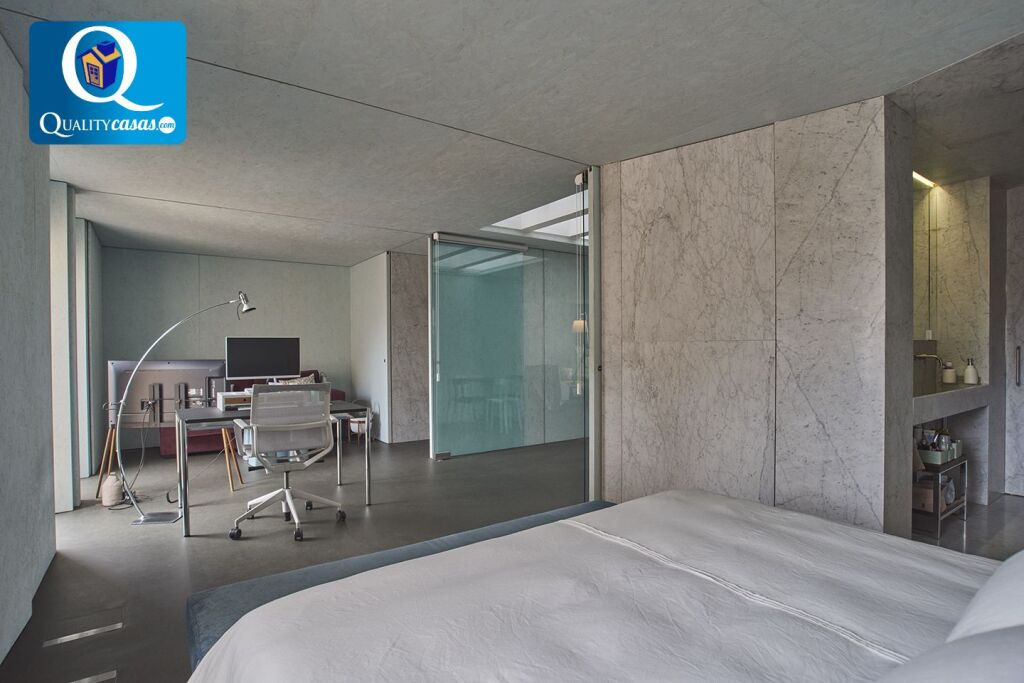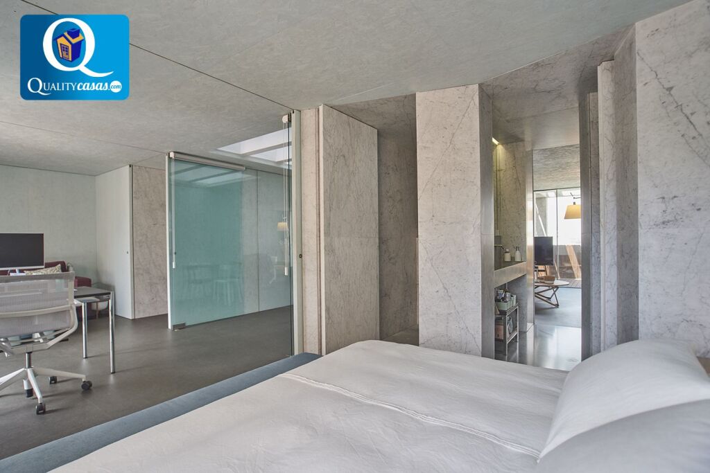 El corazón de la vivienda es un impresionante espacio diáfano, bañado por luz natural gracias a un ventanal de gran formato que aporta una sensación de amplitud excepcional. Este espacio incorpora un sistema de tabiques móviles que permite adaptarlo a distintas necesidades, pudiendo configurarse en varios dormitorios y despacho sin renunciar a la sensación de apertura.