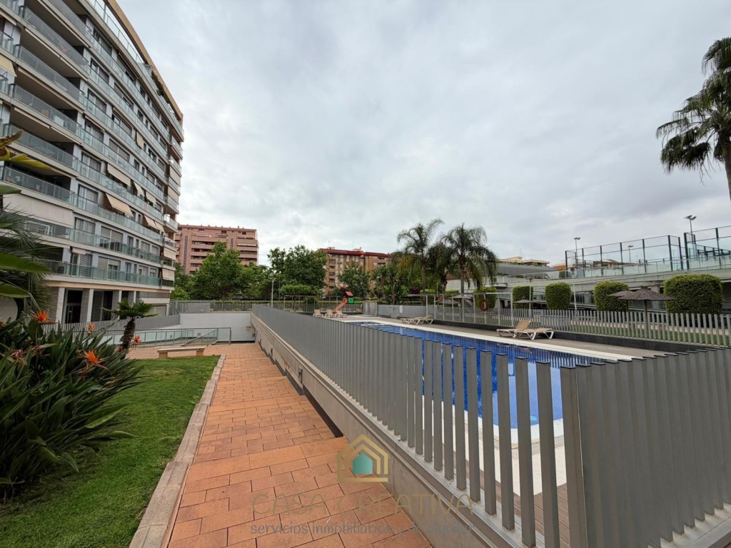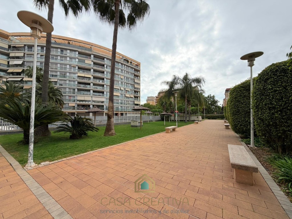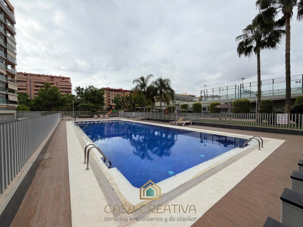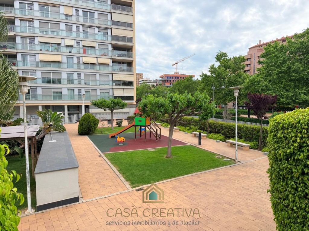 ESPECTACULAR PISO EN ALQUILER EN URBANIZACIÓN – TERRAZA, GARAJE Y ZONAS COMUNES – VALENCIACASA CREATIVA INMOBILIARIA presenta este impresionante piso en alquiler en Calle Alfauir, ubicado en una de las urbanizaciones más completas, seguras y demandadas de Valencia. Una vivienda que destaca por su amplitud, luminosidad y calidad, ideal para quienes buscan un hogar cómodo, moderno y en un entorno privilegiado.Con 121 m2 construidos (111 m2 útiles), este piso ofrece una distribución muy bien pensada, separando claramente la zona de día y la zona de descanso, aportando mayor privacidad y confort.🏡 Distribución y características:3 dormitorios amplios2 baños completosGran salón-comedor, muy luminoso, con acceso directo a la terrazaCocina independiente, totalmente equipada, también con salida a terrazaEspectacular terraza amplia, conectada tanto con salón como con cocina, ideal para disfrutar al aire libreGalería/lavandería acristalada, muy funcionalVivienda completamente amuebladaGrandes ventanales en toda la casa, que aportan muchísima luz natural durante todo el díaAire acondicionado frío/calor por conductosCalefacción por radiadores en toda la viviendaPuerta blindadaPlaza de garaje incluida en el precioEdificio con ascensorConstrucción del año 2007, con muy buenas calidadesUna vivienda pensada para disfrutar de la luz, el espacio y la comodidad en cada rincón.🌿 Residencial con servicios exclusivos:La urbanización ofrece un entorno tipo resort:Piscina comunitariaGrandes zonas ajardinadasClub socialPistas de pádel y tenisZona infantilAdemás, dispone de vigilancia 24 horas, con portero y cámaras, garantizando tranquilidad y seguridad.📍 Ubicación inmejorable:Situado en una de las mejores zonas de Valencia, con múltiples accesos que facilitan la movilidad. A escasos minutos del Centro Comercial Arena, con todos los servicios a tu alcance: supermercados, colegios, universidades, transporte público (metro y autobús), zonas verdes y una amplia oferta de ocio y restauración.Además, la vivienda cuenta con una gran ventaja en el día a día: dispone de un supermercado justo debajo del edificio y otro a escasos metros, lo que aporta una comodidad extra para las compras diarias, también muy bien comunicada con el transporte ya que justo debajo tiene la parada del tranvía y la de autobús.Una zona muy valorada por su seguridad, calidad de vida y excelente conexión, ideal para familias, profesionales o estudiantes.💰 Condiciones del alquiler (según normativa vigente):Contrato de vivienda habitual (de 1 a 5 años, prorrogable)2 meses de fianzaUna vivienda única por características, ubicación y residencial. Si buscas algo completo, cómodo y listo para entrar a vivir, esta es tu oportunidad.Contáctanos para más información o para concertar una visita. Te va a encantar.
