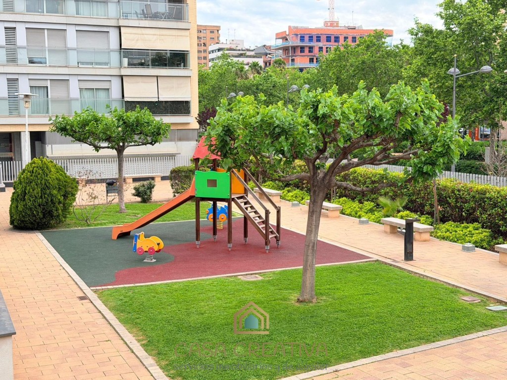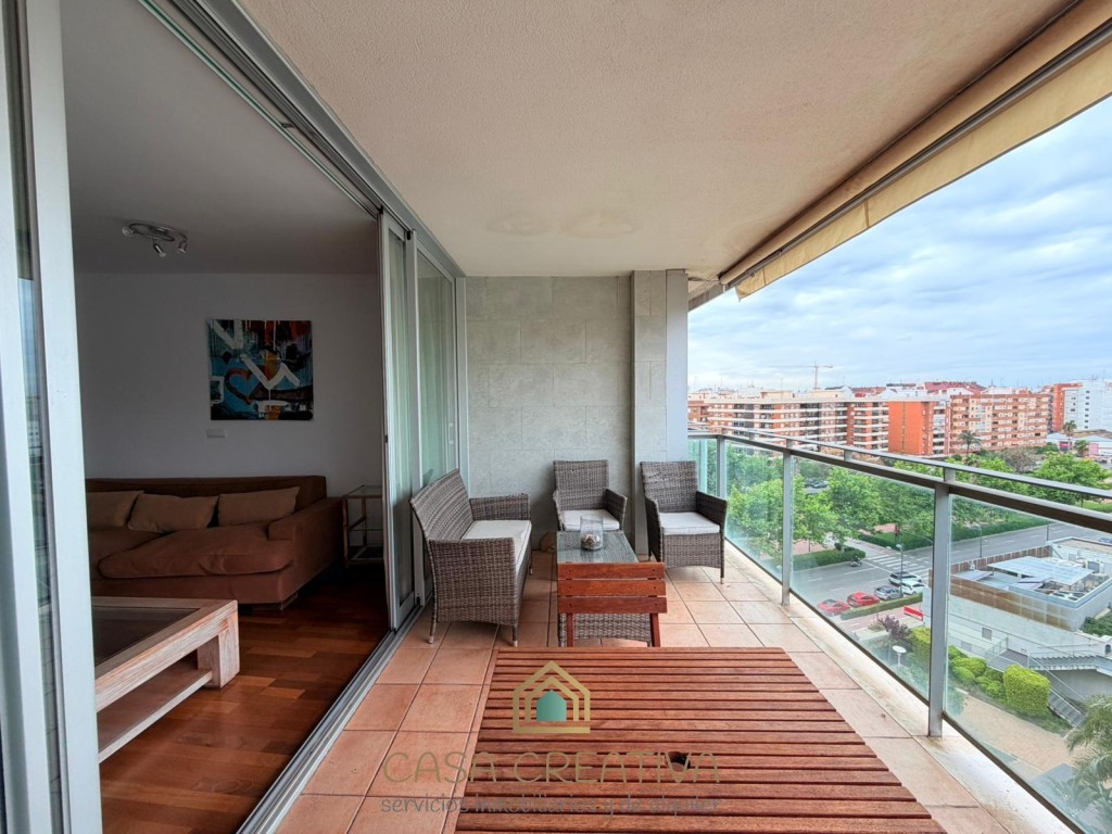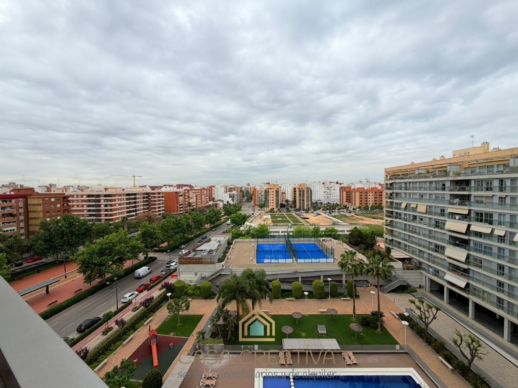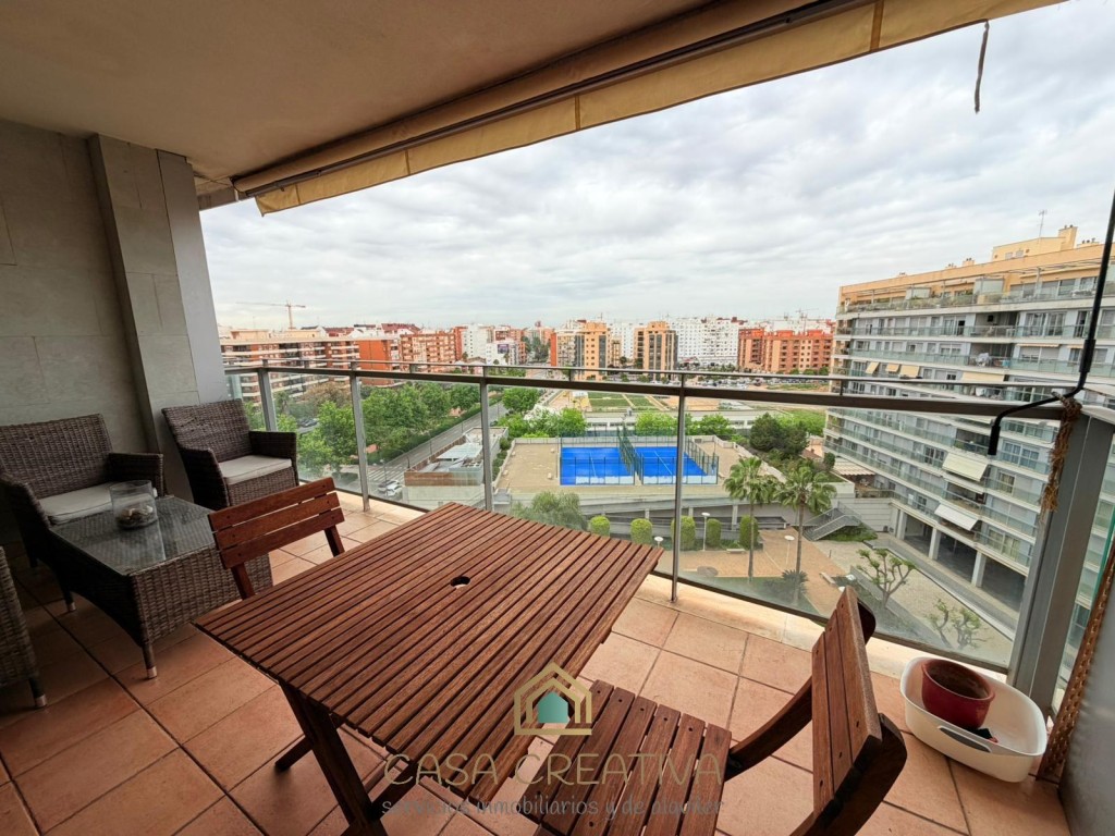 ESPECTACULAR PISO EN ALQUILER EN URBANIZACIÓN – TERRAZA, GARAJE Y ZONAS COMUNES – VALENCIACASA CREATIVA INMOBILIARIA presenta este impresionante piso en alquiler en Calle Alfauir, ubicado en una de las urbanizaciones más completas, seguras y demandadas de Valencia. Una vivienda que destaca por su amplitud, luminosidad y calidad, ideal para quienes buscan un hogar cómodo, moderno y en un entorno privilegiado.Con 121 m2 construidos (111 m2 útiles), este piso ofrece una distribución muy bien pensada, separando claramente la zona de día y la zona de descanso, aportando mayor privacidad y confort.🏡 Distribución y características:3 dormitorios amplios2 baños completosGran salón-comedor, muy luminoso, con acceso directo a la terrazaCocina independiente, totalmente equipada, también con salida a terrazaEspectacular terraza amplia, conectada tanto con salón como con cocina, ideal para disfrutar al aire libreGalería/lavandería acristalada, muy funcionalVivienda completamente amuebladaGrandes ventanales en toda la casa, que aportan muchísima luz natural durante todo el díaAire acondicionado frío/calor por conductosCalefacción por radiadores en toda la viviendaPuerta blindadaPlaza de garaje incluida en el precioEdificio con ascensorConstrucción del año 2007, con muy buenas calidadesUna vivienda pensada para disfrutar de la luz, el espacio y la comodidad en cada rincón.🌿 Residencial con servicios exclusivos:La urbanización ofrece un entorno tipo resort:Piscina comunitariaGrandes zonas ajardinadasClub socialPistas de pádel y tenisZona infantilAdemás, dispone de vigilancia 24 horas, con portero y cámaras, garantizando tranquilidad y seguridad.📍 Ubicación inmejorable:Situado en una de las mejores zonas de Valencia, con múltiples accesos que facilitan la movilidad. A escasos minutos del Centro Comercial Arena, con todos los servicios a tu alcance: supermercados, colegios, universidades, transporte público (metro y autobús), zonas verdes y una amplia oferta de ocio y restauración.Además, la vivienda cuenta con una gran ventaja en el día a día: dispone de un supermercado justo debajo del edificio y otro a escasos metros, lo que aporta una comodidad extra para las compras diarias, también muy bien comunicada con el transporte ya que justo debajo tiene la parada del tranvía y la de autobús.Una zona muy valorada por su seguridad, calidad de vida y excelente conexión, ideal para familias, profesionales o estudiantes.💰 Condiciones del alquiler (según normativa vigente):Contrato de vivienda habitual (de 1 a 5 años, prorrogable)2 meses de fianzaUna vivienda única por características, ubicación y residencial. Si buscas algo completo, cómodo y listo para entrar a vivir, esta es tu oportunidad.Contáctanos para más información o para concertar una visita. Te va a encantar.