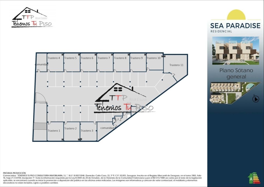 Bienvenido a 'Residencial Sea Paradise', donde la elegancia costera se combina con el lujo contemporaneo para crear un refugio exclusivo junto al mar Mediterráneo, en un entorno idílico, en la codiciada zona Costa Norte de Vinarós.En Sea Paradise' cada detalle ha sido diseñado para ofrecer un estilo de vida sin igual en un entorno de alto standing, con una clasificación energetica A, est en la vanguardia de la eficiencia energética, garantizando un menor consumo y un menor impacto ambiental.Distribución y superficies:Cuenta con una superficie total construida de 190,92 m2 y una parcela de 80 m2, de los cuales 87,14 m2 son útiles de vivienda y 78,38 m2 útiles de superficies abiertas (terrazas, jardines, y terraza ático solárium).La vivienda se distribuye en 2 plantas de altura + terraza ático solarium.La planta sótano del Residencial esta destinada a trasteros - bodega con acceso directo a planta principal por escalera interior incluida y plazas de garaje.PLANTA PRINCIPAL:Porche recibidor + gran salón - comedor - cocina abierto + cuarto de baño (plato de ducha) + escalera interior + terraza jardín delantero + terraza jardín trasero.PLANTA DORMITORIOS:Escalera interior + 3 dormitorios + pasillo + 2 cuartos de baño (con plato de ducha) + balcón terraza.TERRAZA SOLÁRIUM:Escalera interior + gran terraza ático solárium con vistas panorámicas al mar.PLANTA SÓTANO RESIDENCIAL:Incluye gran trastero - bodega y 2 plazas de garaje privativas.Características y detalles:Desde el acceso para personas con movilidad reducida, persianas motorizadas, climalit carpintería exterior, suelos de tarima laminada AC4 y gres porcelánico en suelos, paredes lisas y baños revestidos con azulejo porcelánico, los dormitorios con armarios empotrados forrados y terminados en interior incluso con iluminación, los cuartos de baño con platos de ducha con mampara de vidrio fijo instalada, la cocina incluye amueblamiento alto y bajo de diseño moderno, con encimera Compac o similar, fregadero de un seno con grifería monomando, completamente equipada con los siguientes electrodomésticos: horno, microondas, frigorífico combi y lavadora en color blanco, vitrocerámica de inducción con extractor integrado y lavavajillas todos marca Bosch.*La memoria de calidades es orientativa y podrá sufrir modificaciones durante la obra.*Nuestras viviendas son versátiles y adaptables a las necesidades de sus usuarios con modificaciones especiales por encargo y siempre que se puedan ejecutar.Instalación de video portero en verja exterior en planta principal y planta dormitorios.Las terrazas tendrán pavimento y césped artificial.Las zonas comunes del residencial incluyen piscina comunitaria, zonas ajardinadas y el acceso a garaje con puerta automatizada con sistema de apertura con smartphone bluetooth a través de app, los garajes tendrán pre-instalación para carga de vehículos eléctricos.Disfrute de la comodidad y el lujo en cada rincón de estas viviendas, desde los amplios espacios interiores hasta los elegantes acabados, relájese en el jardín privado o en la piscina comunitaria, y disfrute de las impresionantes vistas al mar desde su soleado solárium privado. Solicite más información del proyecto, forma de pago y condiciones, visita presencial en oficina de ventas con exposición de materiales y programación de visita al terreno donde se va a desarrollar el residencial.